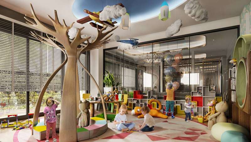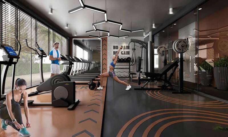 There are 264 flats in the complex, consisting of a 12-storey main block and 9 blocks with 4 floors each. The complex will include 24/7 security cameras and services, a communal garden, walking trails, olympic pool and indoor swimming pool, aquapark, a barbeque area with a gazebo, areas for sunbath, indoor and outdoor children’s playground, communal tennis, football, basketball and volleyball field, gym, Turkish bath, spa, Fin bath, steam room, massage rooms and movie theatre. Besides, it will include indoor and outdoor parking lots, generators and wi-fi on communal areas.
