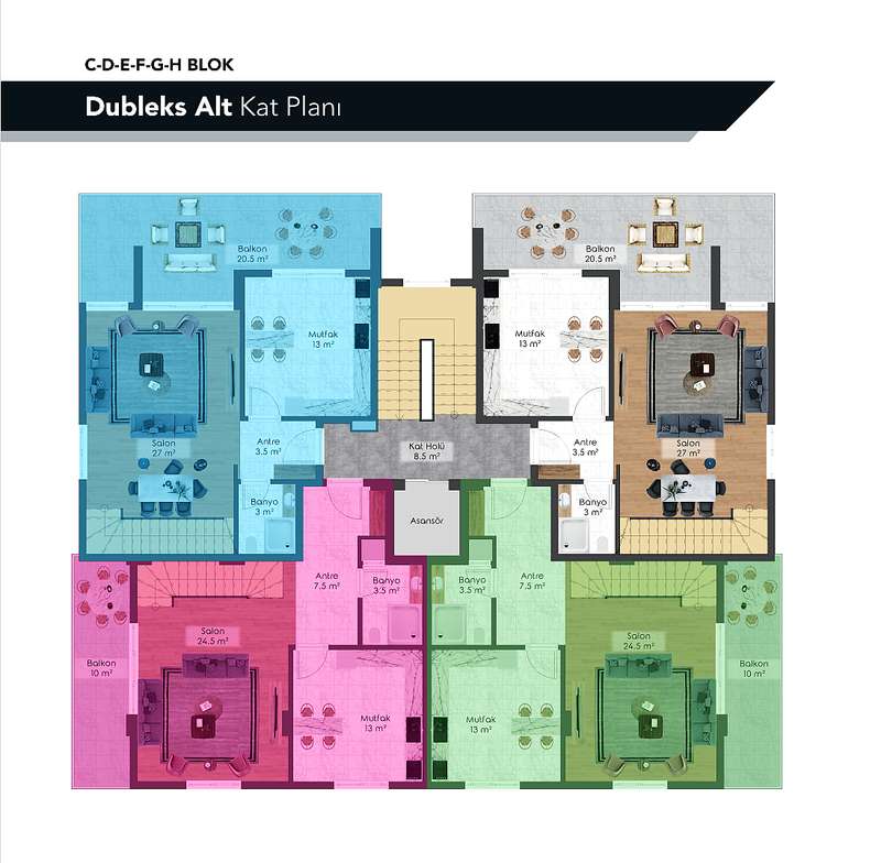 The complex is built following earthquake regulations, with a raft foundation system, reinforced concrete retaining walls, a drainage system for rainwater, outdoor lighting, and perimeter wall railings.