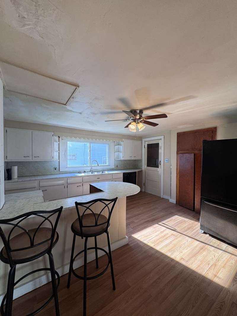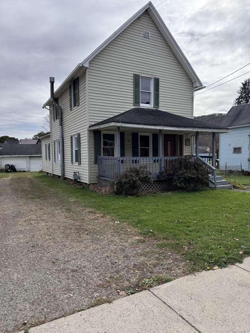 This home is centrally located in town. The layout features a bedroom and full bathroom on each level. The second level consists of two additional bedrooms with the full remodeled bathroom having ceramic flooring. The heart of the home is the spacious living area. Covered front porch with a new door. Outside, enjoy a fenced-in side yard, perfect for kids and pets to play. A detached two-car garage with storage. While the driveway is shared, the benefits of this home outweigh any inconvenience. A driveway may be put in on the right side of the home. Full basement.