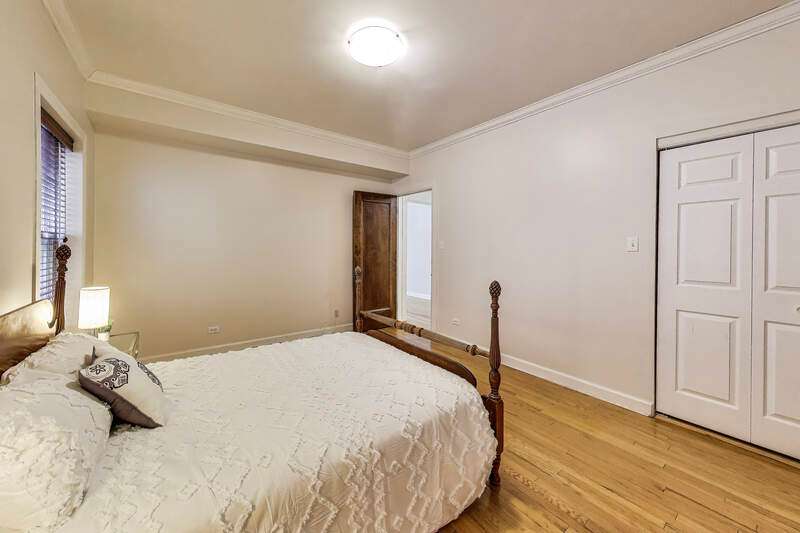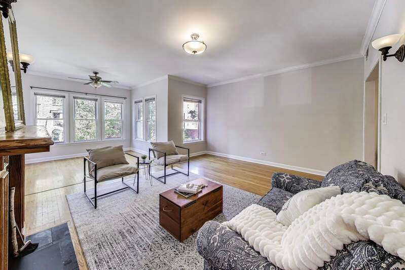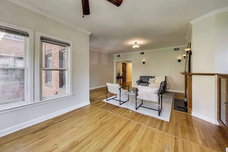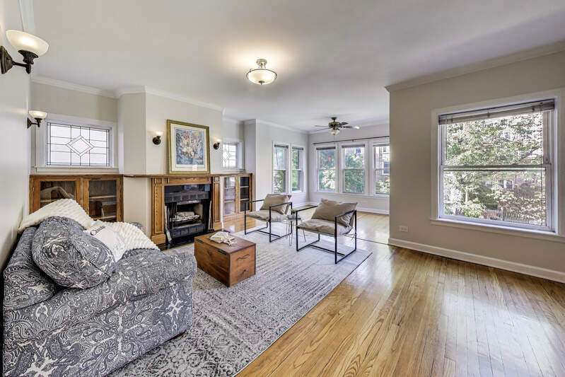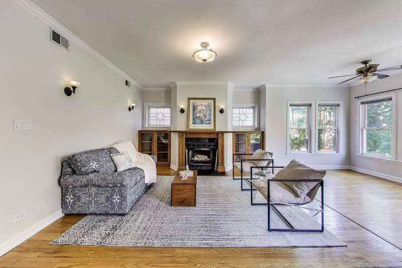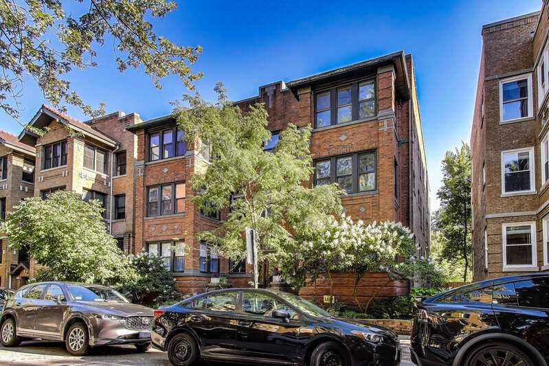 Steps to the Lakefront - Vintage Gem with Oversized Rooms & En-Suite Baths! Located on the east end of Uptown in historic Margate Park, this charming vintage condo is just steps from bike paths, the dog park, and the lakefront. Features include an oversized living room with fireplace and custom built-ins, a large dining room with the original John Hancock chandelier, and two generously sized bedrooms with private en-suite baths. The stylish kitchen offers stainless steel appliances and granite countertops, while the in-unit washer/dryer provides added convenience. Enjoy a huge sun-drenched deck overlooking the lush gardens of Castlewood Terrace. Timeless finishes meet modern updates in this beautiful home!