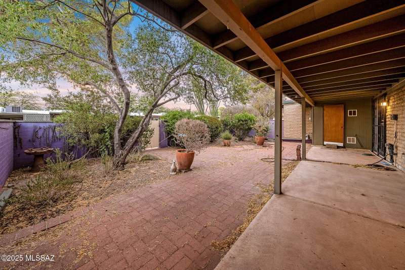 Sellers will credit buyers for new carpet! Charming 2 bed, 1 bath Eastside Tucson condo with endless potential! Enjoy a bright, open living area with large windows, a functional kitchen with ample storage, and two spacious bedrooms. The private backyard is a true retrea featuring mature trees, vibrant purple privacy wall, and a covered patio perfect for relaxing or entertaining. Covered carport adds convenience. Located in a peaceful community close to shopping, dining, parks, and hiking trails. Solid construction and prime location make this an ideal home for first-time buyers, downsizers, or investors. Move-in ready or update to make it your own desert dream!