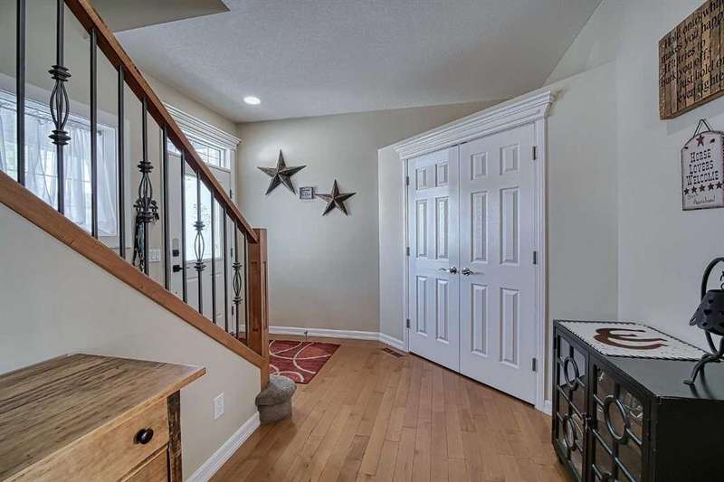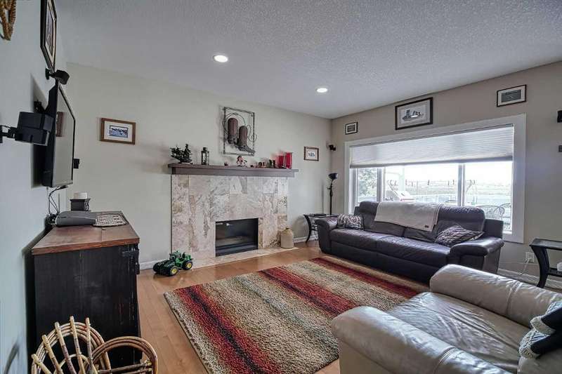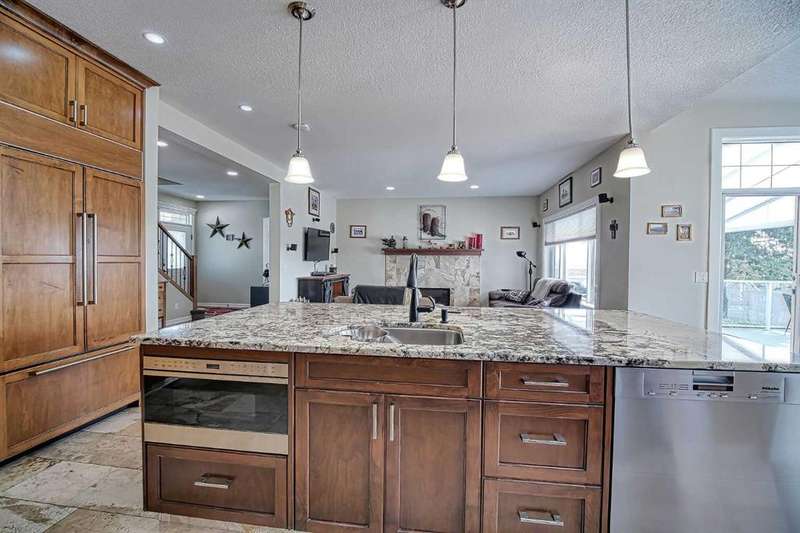 Top-of-the-line home packed with EXTRAS! Step into a grand foyer that opens to soaring ceilings and an impressive open-concept main floor. At the heart of the home is a bright, modern kitchen with PREMIUM appliances: Double Wolf Wall Ovens, an Induction Cooktop, UNDER COUNTER built-in microwave, Miele dishwasher, and a Sub-Zero Refrigerator. Thick Granite counters span the space, including a large breakfast bar with sink and garburator, plus an additional sink and garburator by the windows. Custom cabinetry offers abundant storage throughout. The spacious dining area is wrapped in windows, showcasing sweeping prairie views—perfect for entertaining. A cozy gas fireplace anchors the living room, while remote-control blinds add convenience. From the dining room, step out to a covered deck with glass railing for seamless indoor-outdoor living. Rounding out the main floor are a stylish powder room, a well-planned laundry, and a practical mudroom.Up the first landing, you’ll find a bright bonus room with soaring ceilings and oversized windows—ideal for movie nights or a kids’ play zone. On the next level are two generously sized bedrooms with large closets. The primary suite is a true retreat with prairie views, a spacious walk-in closet and a four-piece ensuite featuring custom lighting—even in the shower, low flow toilet and heated floor. The fully finished basement offers in-floor heating, a spacious rec room with a cozy gas fireplace and a flexible area currently used as a fourth bedroom.This level also includes a full four-piece bathroom. The oversized double garage is fully finished with epoxy floors, drywall, insulation, and in-floor heat. Outside, the massive 10,000 sq. ft. yard is fully fenced with low-maintenance vinyl, RV parking, and sweeping farm views; there may even be enough room for an additional garage. Additional features include hardwood and premium carpet throughout, central air conditioning, underground sprinklers, RO systems, a water softener, LED lighting (everywhere), built-in vacuum system and even a European plug for specialty appliances. This Layne Home is solidly built, well maintained and truly move-in ready.
