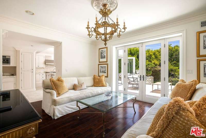 Hidden behind gates in one of Bel-Air's most coveted pockets, this elegant, traditional estate sits on nearly half an acre of beautifully landscaped grounds. Designed for privacy and timeless appeal, the home offers a classic two-story layout with natural light, refined finishes, and effortless indoor-outdoor flow throughout. The main level features a series of warm, welcoming living spaces including a formal dining room, multiple sitting areas, and a spacious kitchen outfitted with top-tier appliances and a sunlit breakfast nook. French doors open to a lush backyard with a resort-style pool, grassy lawn, and multiple terraces for outdoor entertaining. Upstairs, the private quarters include two guest bedrooms and a generous primary suite with a balcony, walk-in closets, and a serene, spa-like bath. A second-floor den or lounge adds flexibility for media, play, or office use. Offering quiet sophistication in a prime Lower Bel-Air location, 10914 Bellagio is the pinnacle of Southern California luxury.