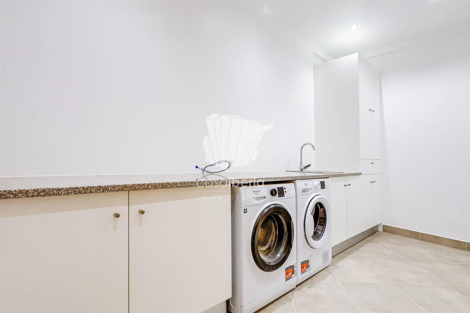 The property includes a spacious garage, a wine cellar ideal for wine enthusiasts, and a practical and functional laundry room. There is also an additional guest bathroom adjacent to the garage, adding even more convenience. This home epitomizes luxury and comfort, offering an exclusive and sophisticated lifestyle.