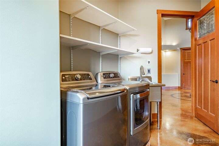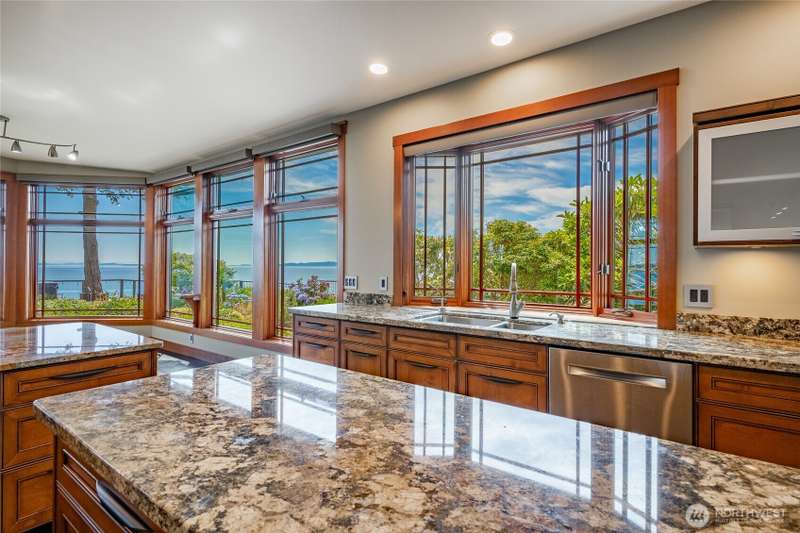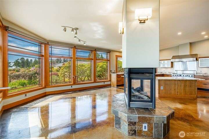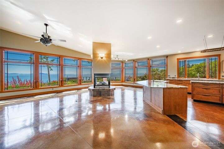 A sanctuary at the edge of the world - this remarkable south-facing bluff home invites you into a life shaped by nature and design. With panoramic vistas that stretch from Mt. Baker to the San Juans, every space has been curated to honor the setting. Voluminous ceilings and tactile materials create a sense of grounded elegance, while the layout encourages both quiet reflection and joyful gathering. From the compass rose at the entry to the bluff-side hot tub beneath a towering Sequoia, this is a home with presence—a place where intention meets inspiration. Guest accommodations offer flexibility, while timeless craftsmanship ensures every moment here feels rooted, yet elevated.