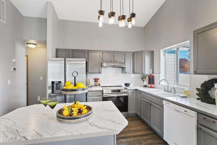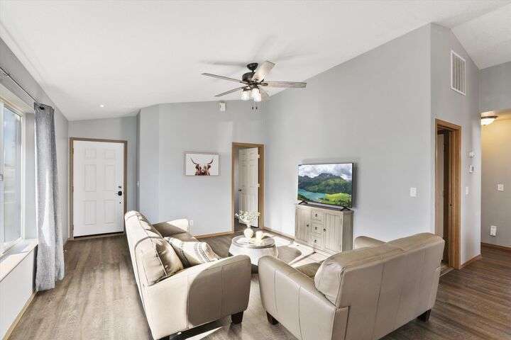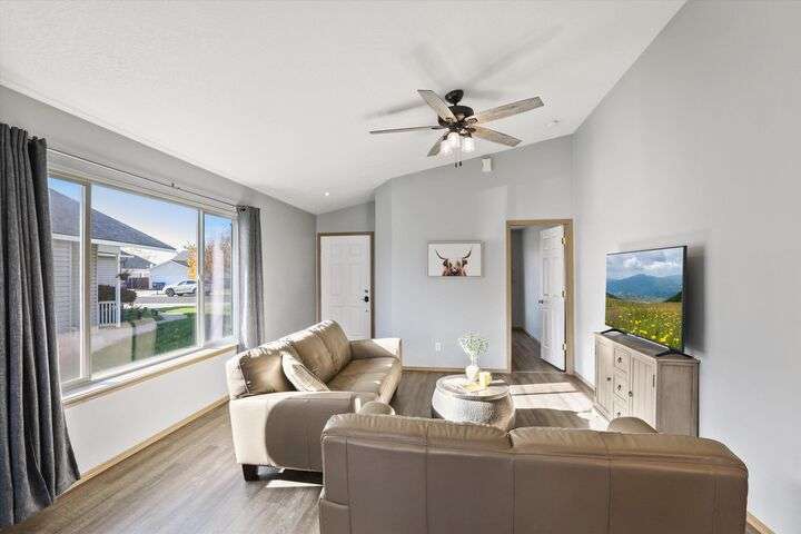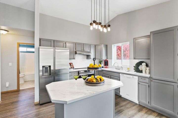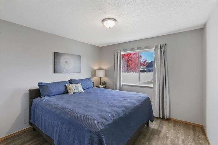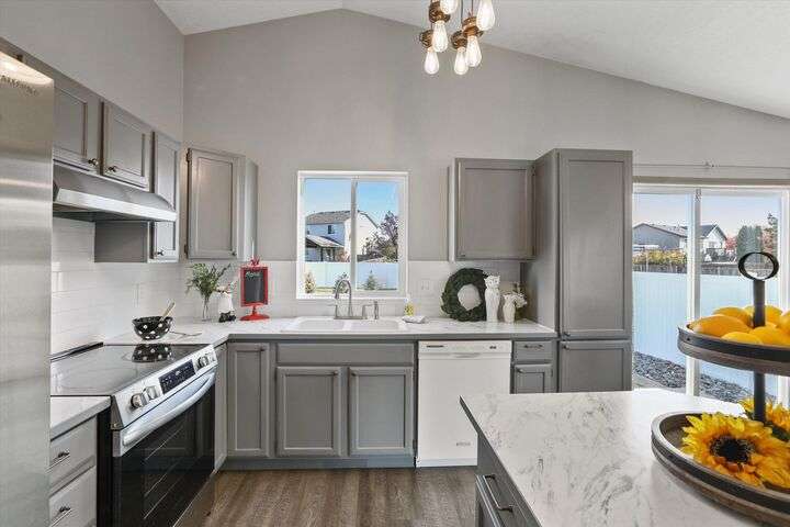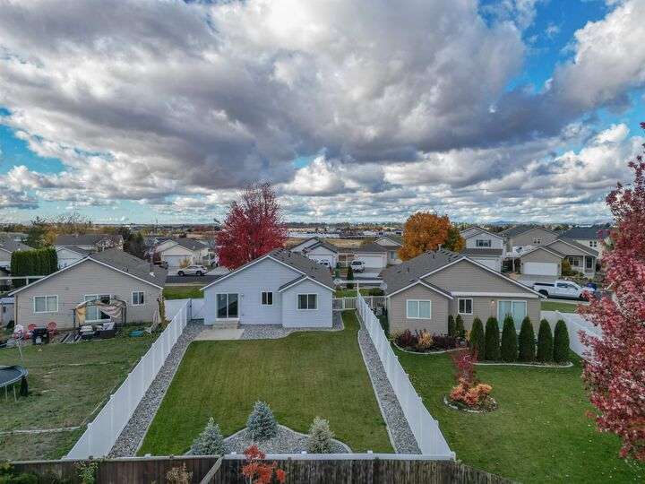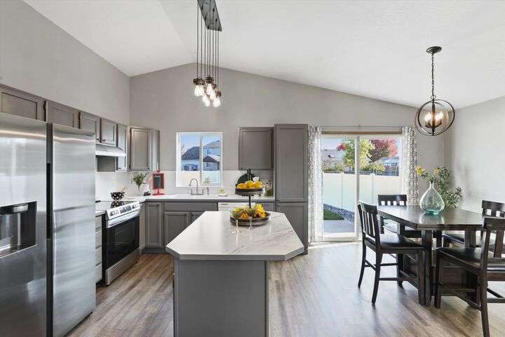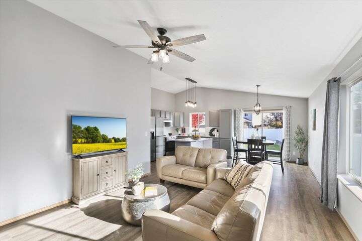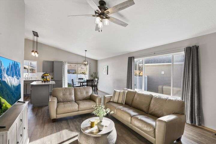 Charming 3BR, 1BA zero-step rancher in a prime location! This main-floor living home features a bright, open floor plan with large windows that fill the space with natural light. The kitchen offers a large island for gathering & ample cabinet space, opening to the dining area. Beautiful newer flooring extends through most of the main floor, adding warmth & style. Enjoy the large, fully fenced yard W/new fencing & fresh landscaping—perfect for entertaining, relaxing, or play. Conveniently located near Fairchild, Amazon Distribution Center & Fairways Golf Course. Move-in ready & full of charm—come see it today!