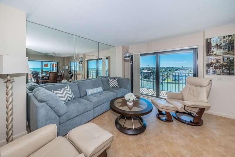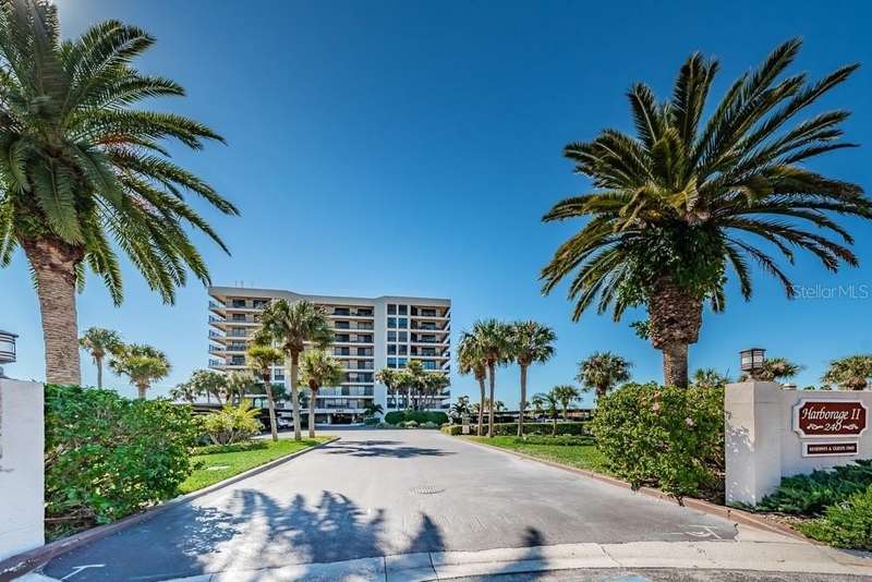 Exclusive Harborage II 24-7 gated Sand Key waterfront community Ideally Situated on the Scenic Marina. Newly remodeled 2 Bedroom, 2 Bath offering the warmth of southwest exposure corner residence with wrap around terrace/balcony. Panoramic , marina, Intracoastal and Gulf Beach views from every room including fabulous nightly sunsets! Updates include new stainless steel appliances, wine fridge and newly installed blinds. All new white shaker style cabinets in kitchen and master bathroom. New drywall ceilings with recessed lighting in kitchen. Newly installed high impact hurricane windows and sliding doors. This split bedroom open floor plan affords privacy. Gorgeous large master suite with double sink vanities soft closing cabinet, designer tile throughout and a luxury walk in shower including large walk in closet. Utility room with washer and dryer. 2nd bedroom accessorized with a pull out sofa standard double bed. Residence comes with your own reserved covered parking space. Amenities include tennis, pickle ball, heated pool, fishing pier, grills and picnic area. No pets and no smoking residence. Ideally located to acclaimed dining, shopping and trolley service. Just a short stroll to the pristine Sand Key white sandy beach and aquamarine Gulf of Mexico! Furnished. Lease terms based on availability.
