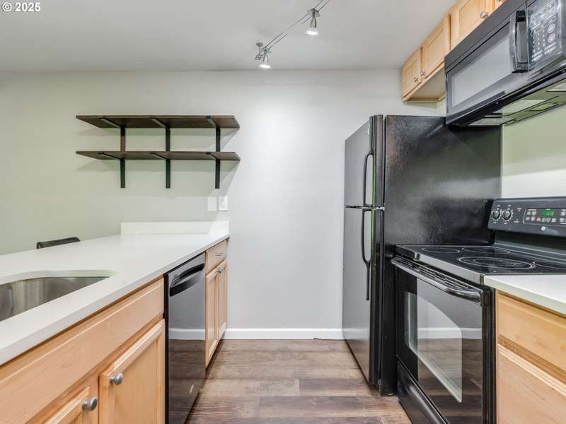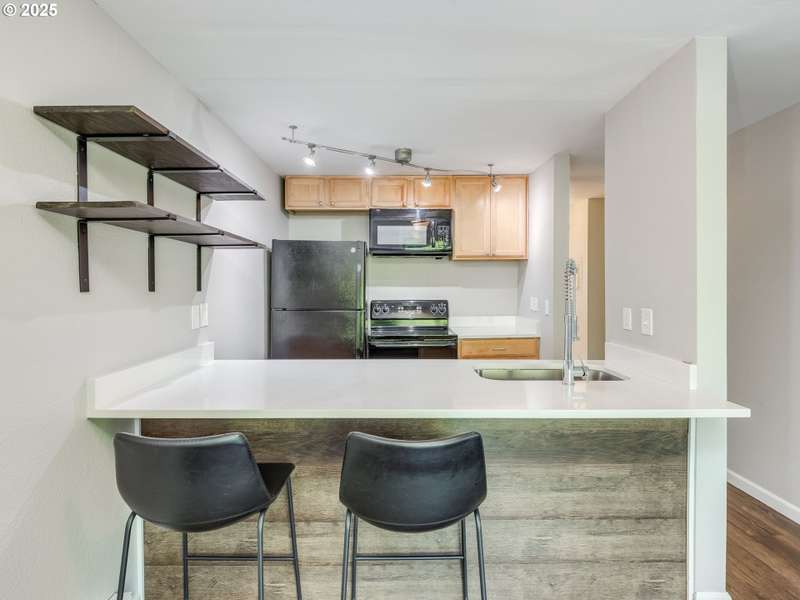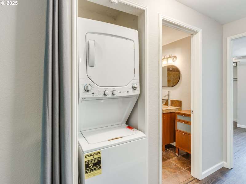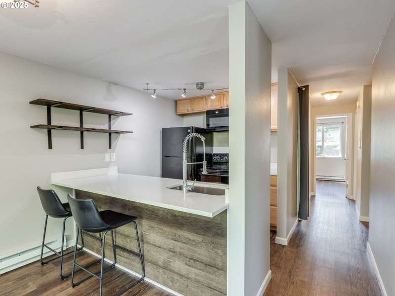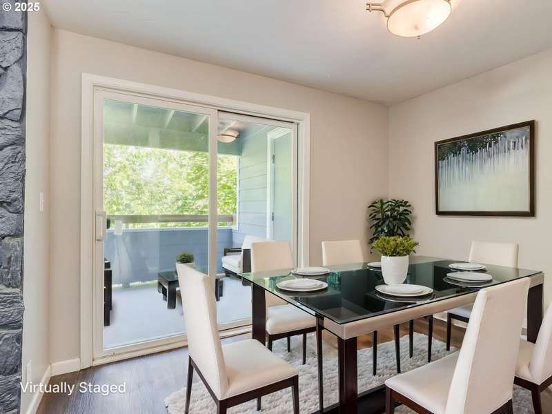 Easy living in Lake Oswego with this charming corner-unit condo in the sought-after Mountain Park community. The space is bright and inviting, with an open kitchen and dining area that flows to a private covered patio surrounded by lush greenery, creating a stylish and functional setting for both cooking and entertaining. Two spacious bedrooms offer flexibility for a home office or guest room, and the in-unit washer and dryer add everyday convenience. A reserved parking spot sits just outside the unit with plenty of guest parking available. Residents enjoy access to extensive community amenities, including both indoor and outdoor pools, a hot tub, weight room, basketball court, and party rooms. Upgrades completed in 2020 include new siding, windows, deck, front stairs, sump pumps in the crawl space, and handrails. The parking lot was repaved in 2021. This move-in-ready condo is close to Oswego Town Square, Tryon Creek State Natural Area, I-5, OR-43, and OR-217, offering a perfect blend of comfort, recreation, and accessibility.