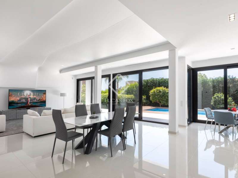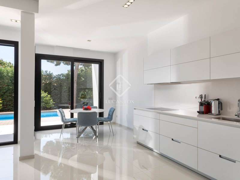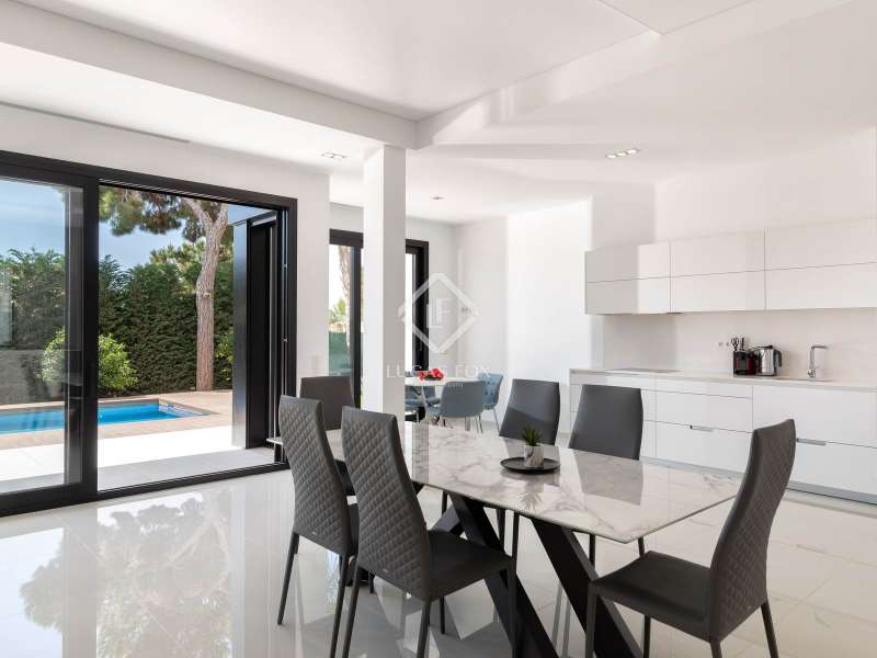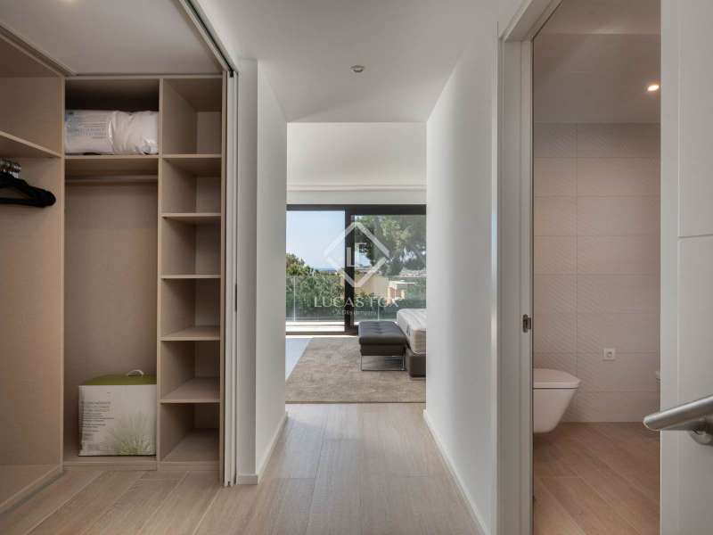 A stunning contemporary villa located in one of the most exclusive areas of the Costa Brava, offering a privileged lifestyle just a few minutes' walk from the crystal-clear beaches and coves of Platja d'Aro. The property is located in Treumal, a quiet residential enclave that combines privacy and proximity to the best amenities, shops, and restaurants in the area. The property was built in 2019 to the highest quality standards and stands out for its modern design, premium materials, and carefully selected high-end amenities. The villa, with a constructed area of 336 m², the villa is spread over three floors. On the main floor , there is a spacious , open-plan open-plan /living-dining room with direct access to the garden and private pool. The fully equipped kitchen elegantly integrates into this space. There is also a bright entrance hall , a guest bathroom , and direct access to the private garage. On the first floor, we find three spacious bedrooms, each with its own private bathroom, as well as a dressing room or built-in wardrobes. Two of them enjoy panoramic sea views. The upper floor houses a large additional bedroom with a private bathroom and a spectacular private terrace overlooking the Mediterranean, ideal as a main bedroom, relaxation area or study with views. Exterior, there is an elegant and peaceful, carefully designed garden and a private pool, perfect for enjoying the Mediterranean climate all year round. The property incorporates cutting-edge technologies such as integrated home automation, underfloor heating, an interior elevator connecting the three floors, and Miele appliances in a Santos-designed kitchen. This property represents a unique opportunity for those seeking a luxury residence or second property on the Costa Brava, offering a perfect balance of modernity, a prime location, and unparalleled sea views.