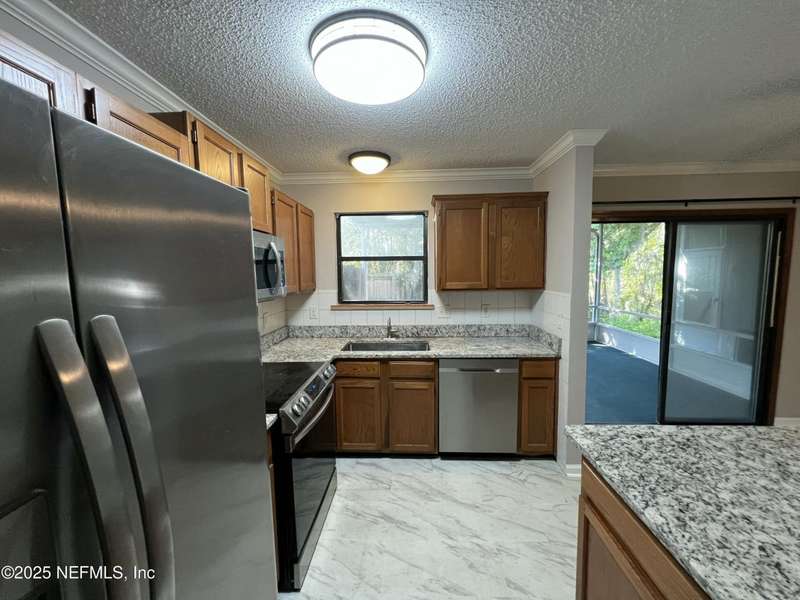 Spacious upgraded townhouse in the Mandarin area. Large two bedrooms with private bathroom each. New luxury laminate floors throughout unit. Interior freshly painted. Tile in dining and kitchen area. Kitchen has granite countertops and stainless steel appliances. Enclosed patio in the back. One car garage. Washer and dryer included. Owners hold active real estate license.