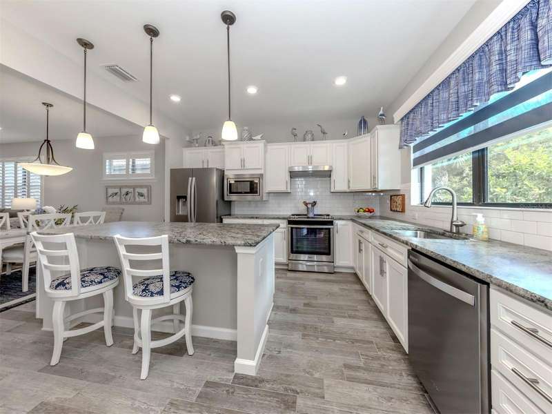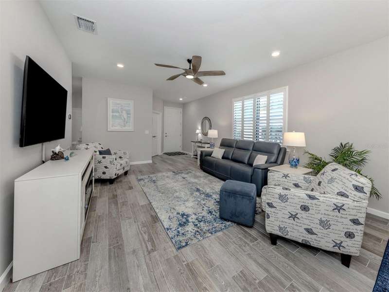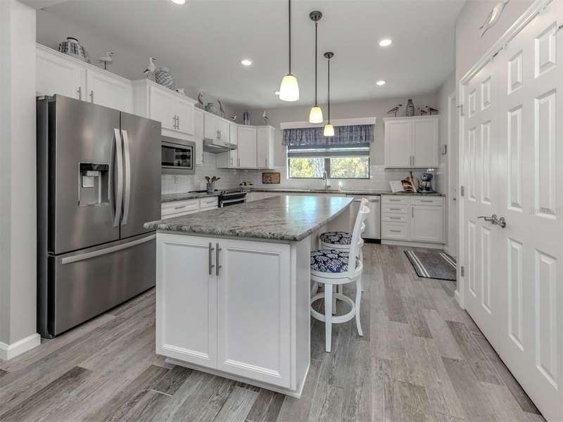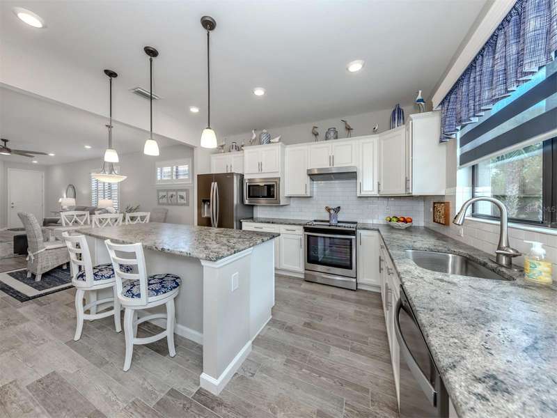 Welcome to this lovely, maintenance free single family home in the highly sought-after 55+ community of Cypress Falls at The Woodlands in North Port. Built in 2019, this meticulously maintained home offers an open-concept layout designed for both comfort and entertaining. The spacious chef’s kitchen is a true showstopper, featuring white shaker cabinets, abundant storage, leathered granite countertops, and a large cooking island that serves as the heart of the home. Plantation shutters throughout. The bedrooms have been updated with stylish new tile flooring, and the primary suite includes a spa-like ensuite bath and an oversized walk-in closet. Overhead custom storage in the garage. Enjoy peaceful views from the extended lanai overlooking the lush preserve, with a tranquil water view just to the right. At the front of the home, the owners have added a charming screened-in porch — the perfect spot for morning coffee or a quiet evening retreat. Cypress Falls is a beautifully maintained, gated, resort-style community offering an active, low-maintenance lifestyle. Residents enjoy a wealth of amenities, including a clubhouse with fitness center, two resort-style pools, a resistance pool, spa, tennis and pickleball courts, bocce ball, and scenic walking trails. With a full calendar of activities and clubs, Cypress Falls provides the perfect blend of relaxation and engagement in one of North Port’s most desirable 55+ neighborhoods.