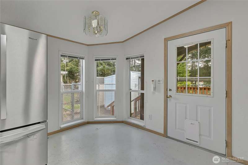 Charming and light-filled 3-bedroom, 2-bath home in the beautifully maintained 55+ Friendly Ridge Community! Only $1300 a month! This 1,120 sq ft home offers skylights, easy-care flooring, and spacious closets. Enjoy the convenience of all brand-new appliances that stay, a full guest bath, and three exterior doors for flexible access. The bedrooms offer a blank canvas to personalize to your taste. A handy mudroom, covered parking, and a storage shed add to the functionality. Relax on the covered deck and let your small dog enjoy the Fully fenced backyard. Ideally located just minutes from shopping, dining, and medical facilities. Move-in ready and waiting for your touch!