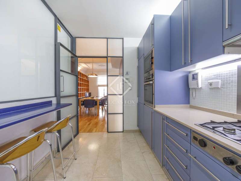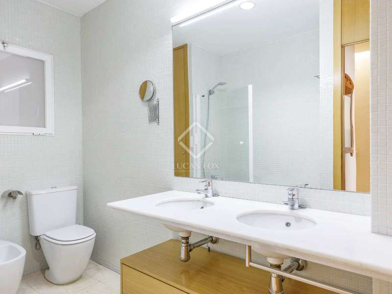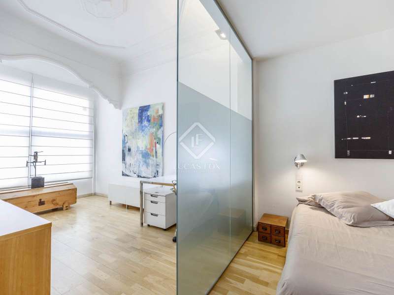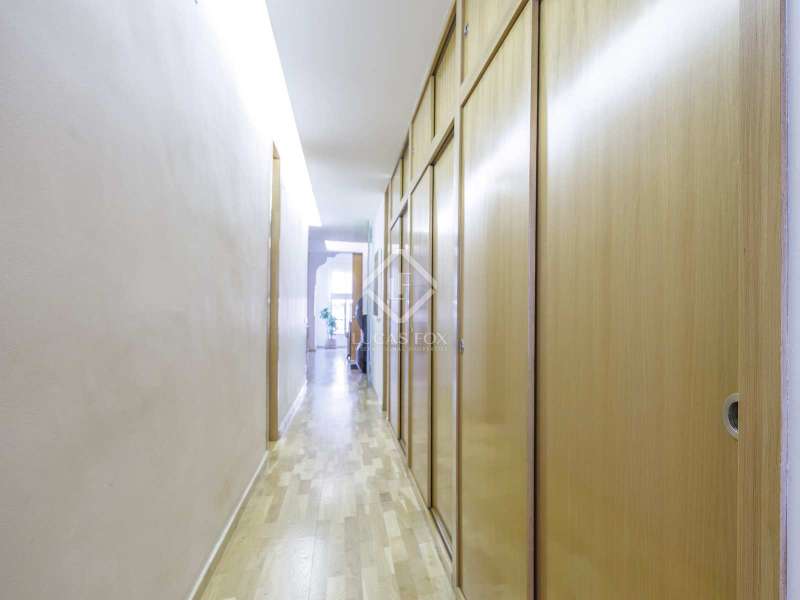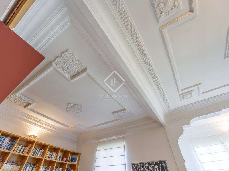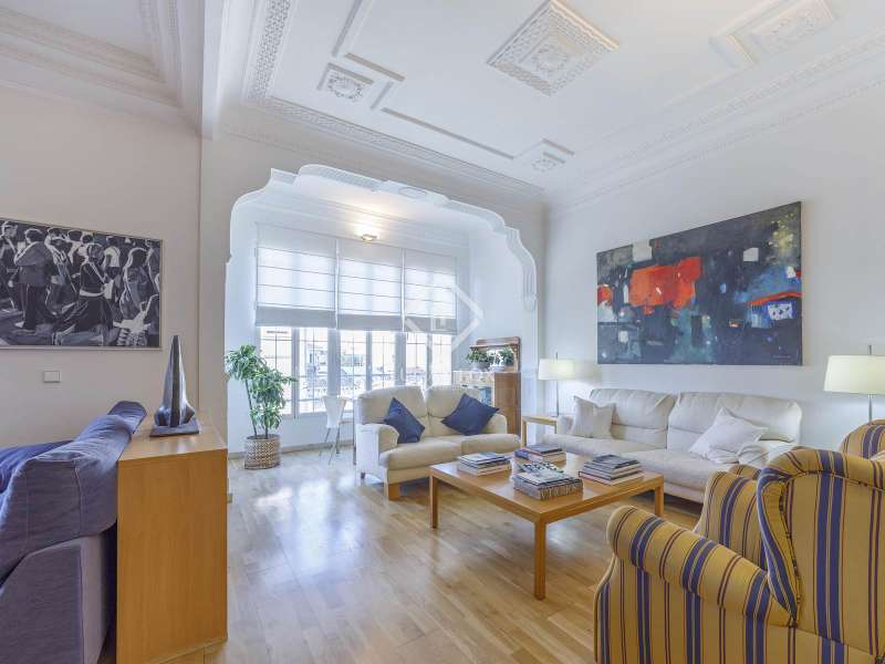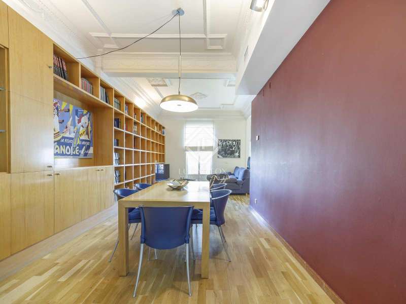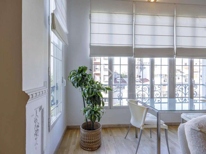 Lucas Fox presents this apartment located on the upper floor of an elegant building built in 1927, perfectly maintained and with the common elements very well maintained, in the Eixample neighbourhood of Valencia. It has an area of 202 m² built with common elements. The property has been completely renovated with top quality materials and a practical design, with an excellent layout. At the same time, the highly valuable period architectural elements have been maintained and preserved, such as high ceilings with original moldings, perfectly restored. We enter through a practical entrance hall and on the left is the living-dining room, large in size and separated into several clearly differentiated rooms. It has a pleasant viewpoint on the façade with beautiful unobstructed views, through which abundant natural light enters. The floor kitchen is independent, but adjacent to the dining area. It is separated by a sliding door. It has a practical gallery and laundry area. The night area is clearly differentiated from the day area by a sliding door and is oriented towards the rear of the property, for greater comfort and independence. In this area we find an study facing the light well and a full bathroom . The generously sized main bedroom enjoys a comfortable, very sunny and cheerful reading area and a private full bathroom . It faces a large, clear block patio, so it receives abundant natural light. With this same orientation, we have two double bedrooms, with a large closet area. A full bathroom serves them. The property includes natural wood and marble floors in the wet areas , hot/cold air conditioning through ducts, original ceilings with perfectly restored moldings, exterior carpentry with chamber and thermal and acoustic insulation, and interior carpentry in natural wood. Get in touch for more information.