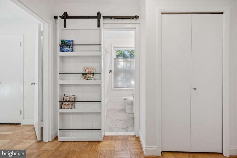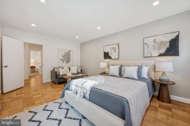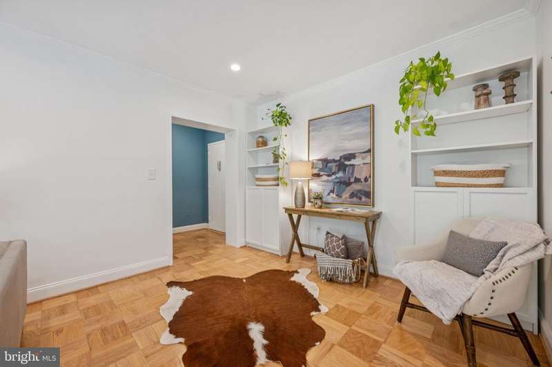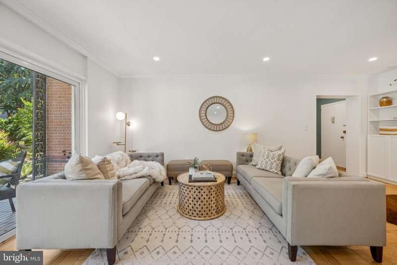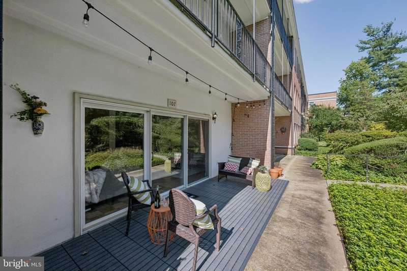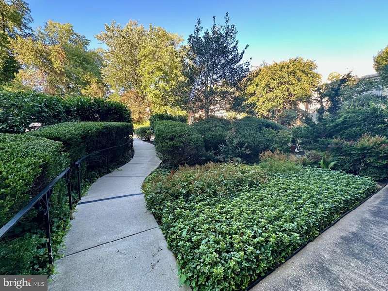 Rarely available two-bedroom condo offering nearly 1,000 square feet of living space with desirable outdoor main level patio tucked away just blocks from the future Purple Line Metro stop. This home combines comfort, convenience, and value with extra storage, dedicated parking, and all utilities included in the condo fee. Upon entry to the foyer with large closet, the interior features gleaming parquet floors and an open layout with a flexible work/reading area, spacious living room, and adjacent dining space. The renovated kitchen is appointed with quartz countertops, stainless steel appliances, and modern finishes. Both bedrooms are generously sized and include louvered shutters that provide privacy while still welcoming natural light. Step out to a private patio with direct access to landscaped greenery, maintained by the condo association for year-round garden views. Just blocks away, Chevy Chase Lake offers a vibrant mix of amenities including Amazon Fresh, Playa Bowls, Dok KhaoThai, Stretch Lab, RTR Pilates, Sarah's Ice Cream, CVS, One Medical, and more. Outdoor recreation is also close by with Rock Creek Park trails around the corner, along with easy commuter access to major routes. This move-in ready home presents an ideal opportunity in a highly desirable Chevy Chase location.