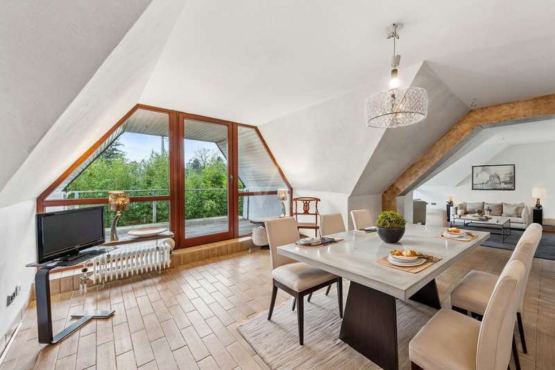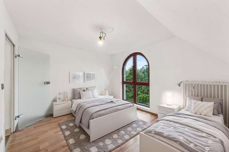 Spacious 4-room apartment with good connections and expansion potential This spacious apartment offers a well-thought-out room layout and a wide range of possible uses on approx. 154 m² of living space. It is located on the 1st floor of an apartment building built in 1985. The apartment is situated on a plot of approx. 747 m² and impresses with its proximity to the forest and excellent transport connections. This special apartment was created by merging two identical units and now boasts a spacious room concept as well as 3 bathrooms and 3 cellar rooms. The property has four generously proportioned rooms that allow for individual design. The living area is bright and open-plan, creating a pleasant living atmosphere. Two south-west-facing loggias offer additional outdoor space. A particular highlight is the fitted kitchen, which blends harmoniously into the room concept. The modern bathrooms have been individually designed and offer contemporary comfort. Central heating ensures even heat distribution throughout the apartment. An additional usable area of approx. 65 m² is provided by the 3 associated cellar rooms, as well as a separate laundry room with special usage rights and a bicycle storage room. There is also a carport, which can be used as an additional terrace or as a sheltered parking space for a car. The two large attics represent a further potential of the property. These have not yet been converted, but offer the opportunity to be used as a hobby room and thus create additional living space. The convenient location provides quick access to public transport and important traffic routes. The immediate proximity to the regional train tracks ensures good accessibility, while at the same time the proximity to the forest offers recreational opportunities close to nature. This single-storey apartment combines a generous living space with practical features and offers versatile design options for future residents.