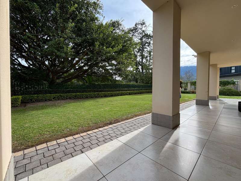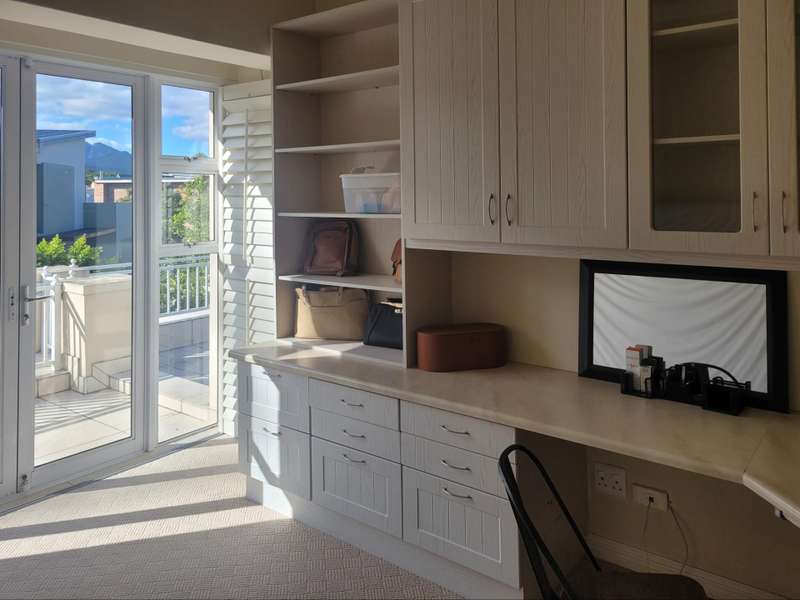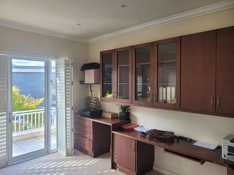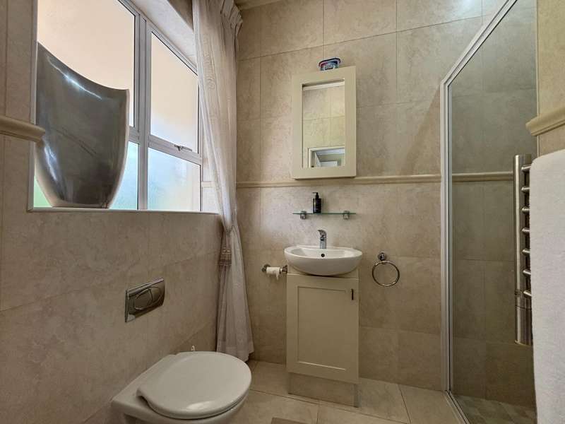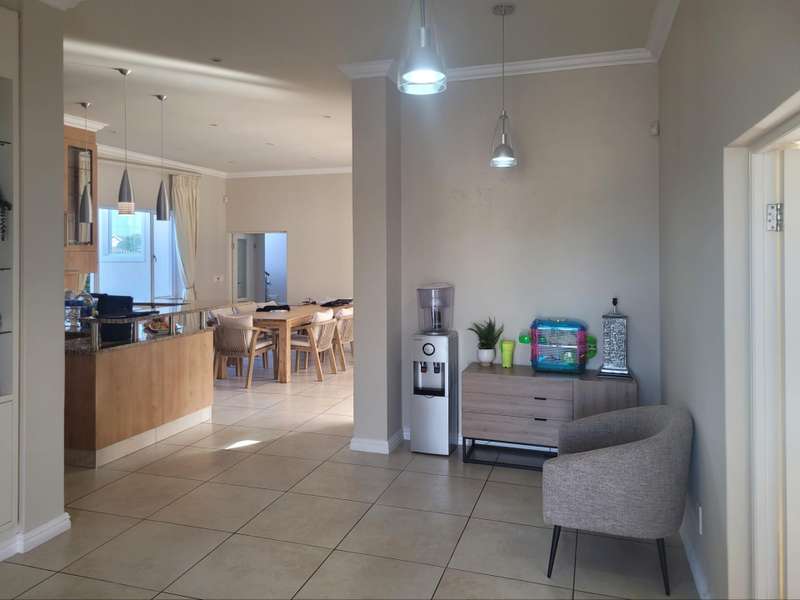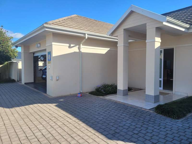 This four-bedroom home in King George Park offers luxurious living overlooking the golf course. The ground floor features a spacious entrance and a large lounge. Fully tiled double garage, separate golf cart garage or storeroom. A stunning kitchen overlooks the dining area. Both the dining room and lounge open to a covered veranda to the well-maintained garden. On the ground floor, the master suite welcomes you. The second bedroom on this level has an en-suite shower. Both bedrooms open onto a covered patio and the back garden overlooking the golf course. Upstairs, you will find two more bedrooms, a study or 5th bedroom, and one and a half bathrooms. Each room on this floor opens onto a wrap-around balcony with mountain and golf course views. A walk-in storage room is conveniently located under the staircase near the kitchen area. This home is equipped with underfloor heating, air-conditioning, a central vacuum system, security cameras, and a backup generator in a generator area adjacent to the double garage. The property is ideally located near the George Golf Course, bowling club, George Hospital, and local schools. Contact me today to schedule a private tour of this property.