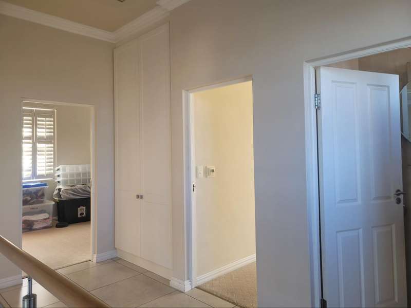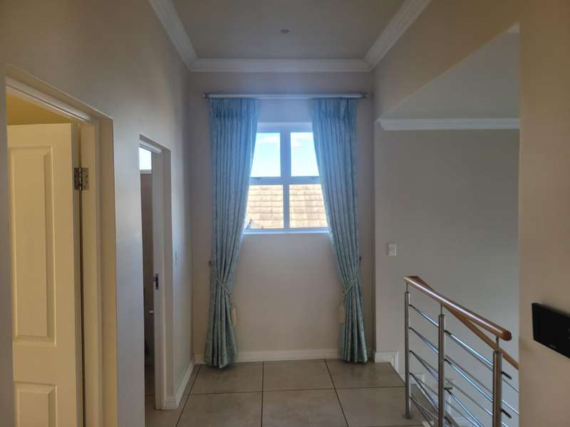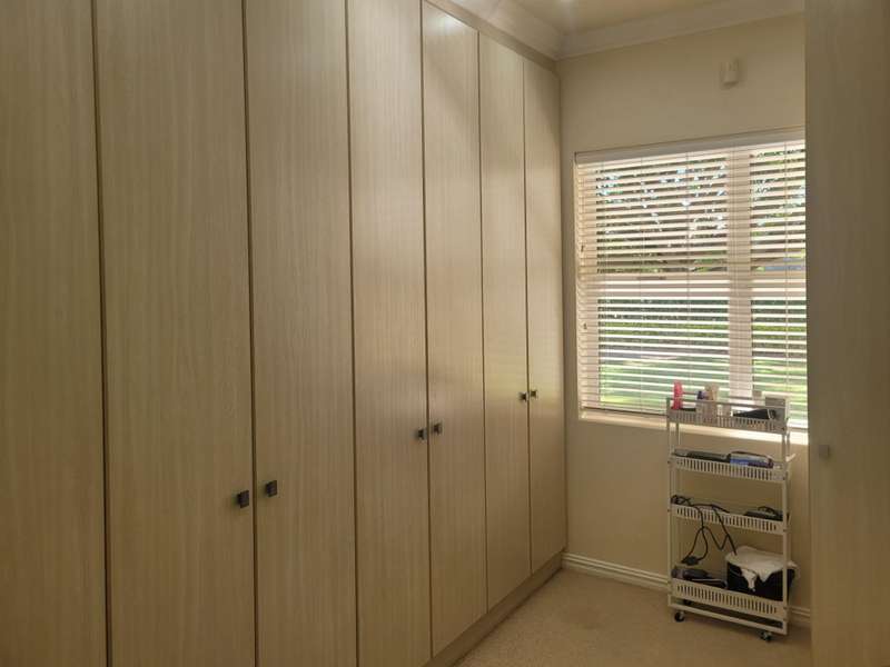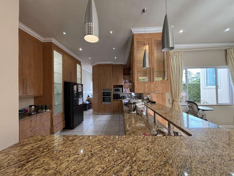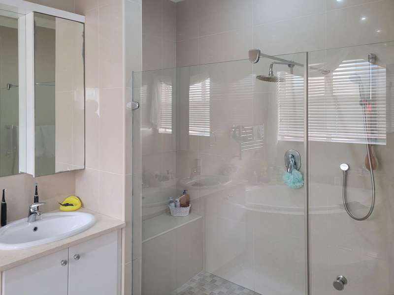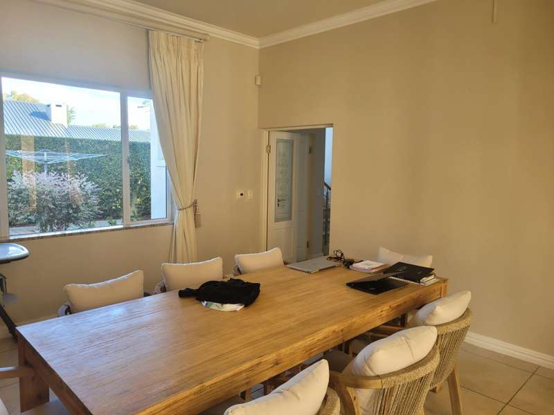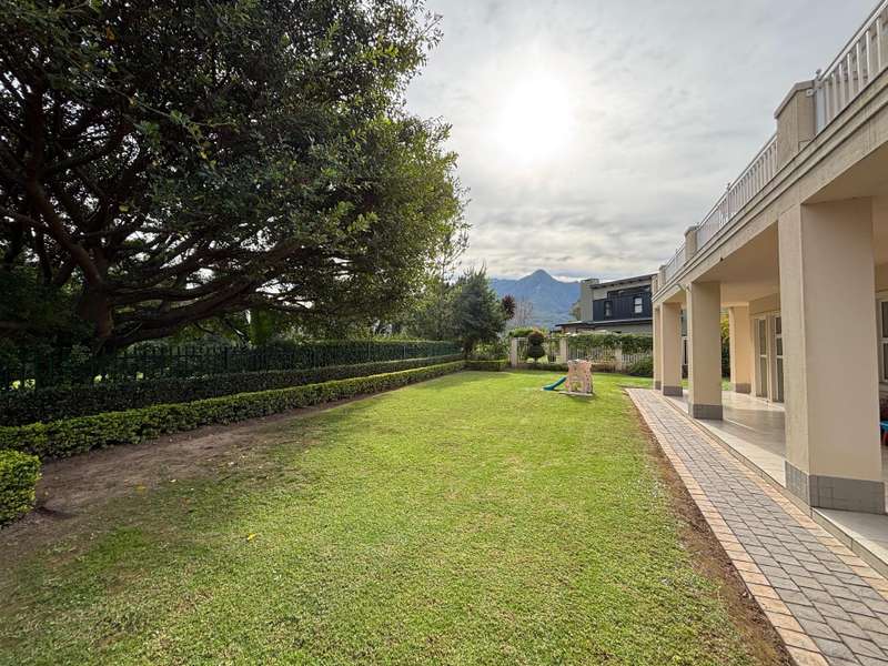 This four-bedroom home in King George Park offers luxurious living overlooking the golf course. The ground floor features a spacious entrance and a large lounge. Fully tiled double garage, separate golf cart garage or storeroom. A stunning kitchen overlooks the dining area. Both the dining room and lounge open to a covered veranda to the well-maintained garden. On the ground floor, the master suite welcomes you. The second bedroom on this level has an en-suite shower. Both bedrooms open onto a covered patio and the back garden overlooking the golf course. Upstairs, you will find two more bedrooms, a study or 5th bedroom, and one and a half bathrooms. Each room on this floor opens onto a wrap-around balcony with mountain and golf course views. A walk-in storage room is conveniently located under the staircase near the kitchen area. This home is equipped with underfloor heating, air-conditioning, a central vacuum system, security cameras, and a backup generator in a generator area adjacent to the double garage. The property is ideally located near the George Golf Course, bowling club, George Hospital, and local schools. Contact me today to schedule a private tour of this property.