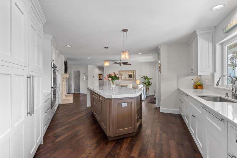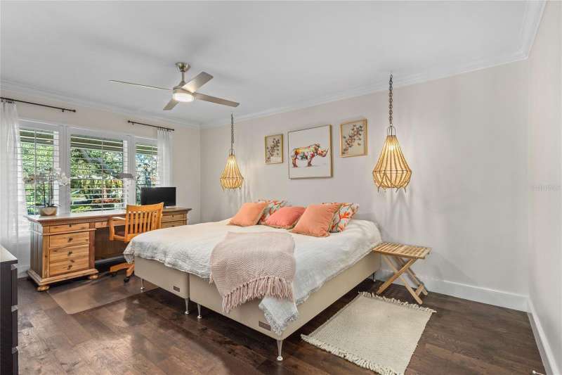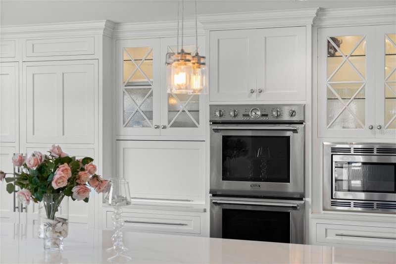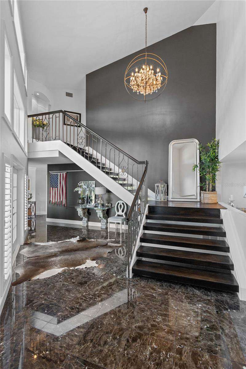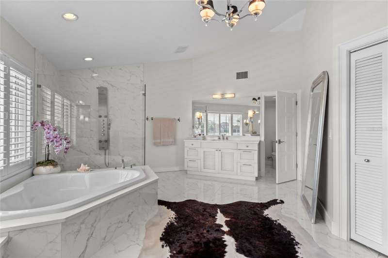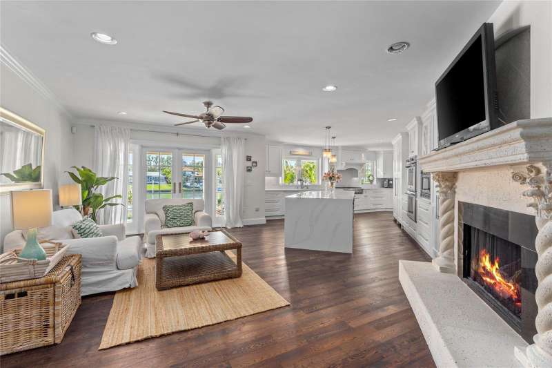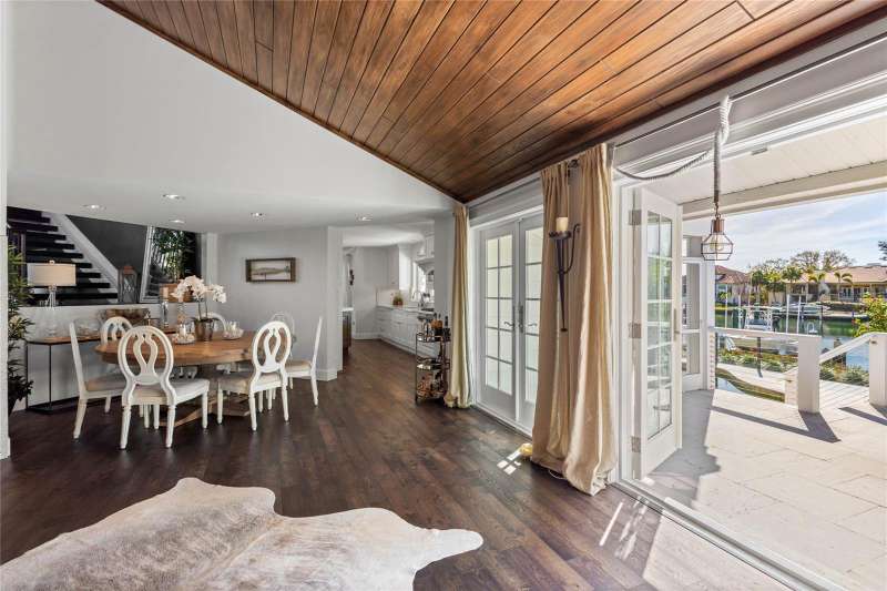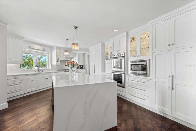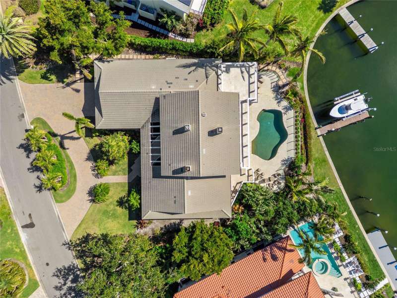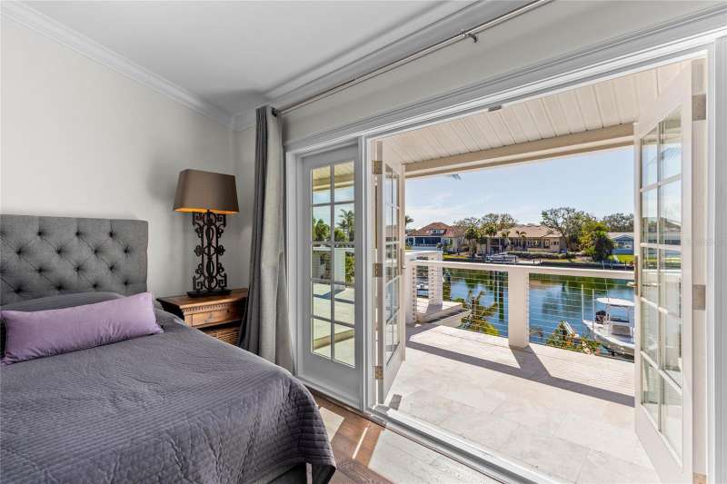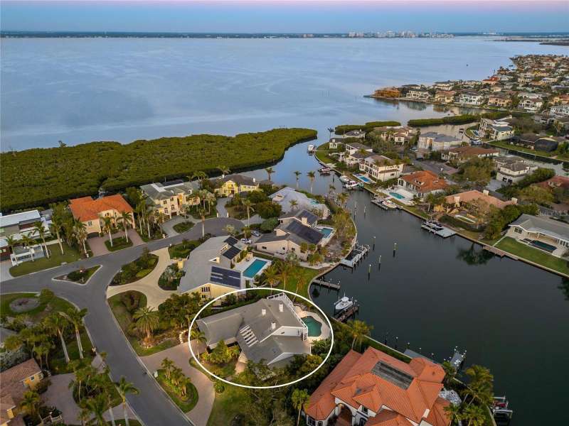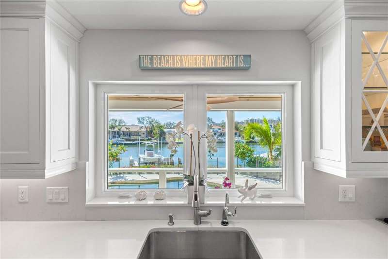 This exquisite two-story waterfront home located in the coveted Harbor section of Bay Isles has been meticulously renovated to embody modern elegance and luxurious coastal living. Surrounded by lush tropical landscaping, the home welcomes you through an elegant French door entrance into the grand foyer, where soaring ceilings, gleaming travertine flooring, and a striking wrought iron floating staircase with rich, dark wood steps set the tone for the refined elegance that unfolds throughout the home. The lower level boasts a bright and airy open space with hardwood floors throughout, creating a welcoming atmosphere that effortlessly combines sophistication with the timeless beauty of natural materials. The spacious family room is anchored by a stunning fireplace with decorative columns and an elegant mantel, complemented by French doors leading to the expansive waterfront lanai, reinforcing the home's seamless connection to its stunning natural surroundings. A culinary enthusiast’s dream, the generously sized kitchen features a large island with a waterfall granite countertop, custom cabinetry, ample storage space, and high-end stainless steel appliances, including a six-burner gas range and double ovens. Adjacent to the kitchen, the dining area and great room spaces flow seamlessly into each other. The great room is both grand and inviting, showcasing a dramatic wood-clad cathedral ceiling that adds warmth and character. A second stone fireplace enhances the ambiance, while three sets of French doors that open onto the lanai offer an effortless transition between indoor and outdoor living. Also on this level are two generous guest suites, each with a full bath, one with direct lanai access, and a den with full bath. Upstairs, the primary suite is a true retreat. Floor-to-ceiling windows illuminate the space, and French doors open to a spacious private balcony, offering captivating water views that create a peaceful escape. A cozy fireplace adds to the intimate atmosphere, while the spa-inspired en-suite bath indulges with marble flooring, soaking tub, dual vanities, frameless glass walk-in shower, and water closet, all overlooking the serene waterway. The outdoor living space is equally spectacular, designed for both relaxation and entertaining. The expansive lanai features multiple covered areas with a rich wood-clad ceiling and retractable screens, a sun-drenched open-air section, and a stunning saltwater pool with travertine decking framed by verdant tropical landscaping. Just beyond the pool, a private dock with a boat lift sits on a deep-water basin and wide canal with no bridges to Sarasota Bay, offering quick and direct access for boating enthusiasts. Bay Isles Beach Club membership is included. This extraordinary home seamlessly blends elegance, comfort, and the unparalleled beauty of waterfront living, creating a sanctuary that is as functional as it is breathtaking.