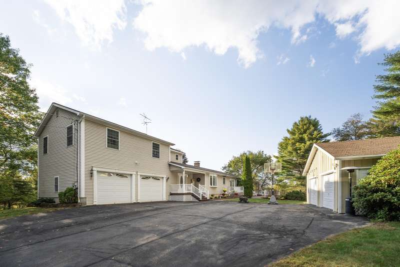 Welcome to an exceptional property that perfectly blends modern comfort with natural beauty. This updated contemporary ranch sits on 17 acres, creating a private oasis just minutes from both Bangor and Orono. Step onto the welcoming porch and into an open-concept living space that seamlessly connects the living room, dining area, and kitchen with a center island—ideal for everyday living and entertaining. The first-floor primary suite is a true retreat, featuring a spacious dressing room, double vanity bath, and picture windows with stunning backyard views that bring the outdoors in. Upstairs, you'll find three additional bedrooms with generous closets, a full bathroom with jacuzzi tub and makeup table, and a cozy sitting area—perfect for family or guests. The finished basement expands the living space with a warm wood stove, another bathroom, and a workshop with walkout access. Thoughtful details throughout include a magnetic wall for showcasing photos, a half bath and laundry room between the garage and living area, and a utility tub that doubles as a pet bath. Practical spaces abound with a 2-car attached garage plus a detached 2-car garage for extra storage or hobbies. Outside, a concrete path winds towards the woods, inviting you to explore your own private sanctuary. Outdoor enthusiasts will love the easy access to Bangor City Forest trails and nearby Pushaw Lake, where fishing, boating, and recreation await.