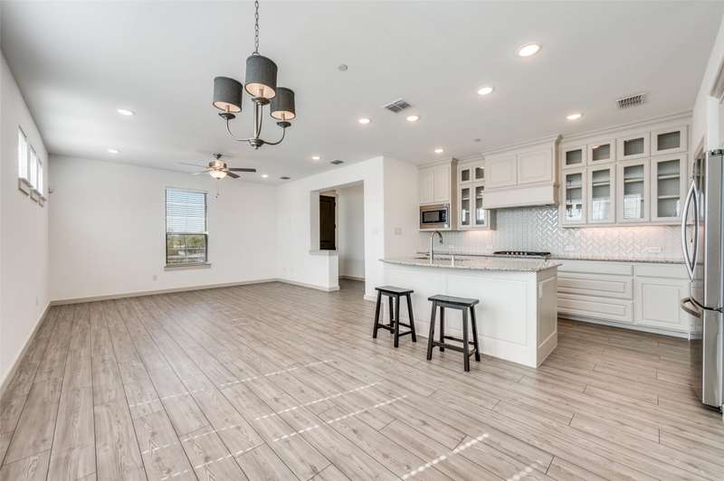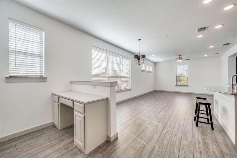 Welcome home to this bright and beautiful townhome in the Terraces of Las Colinas! Youll love how fresh and move-in ready it feels its hard to believe its not brand new. As an end unit, its filled with natural light from extra windows that make every room feel warm and open. The main floor features an open-concept layout with a gorgeous kitchen that includes an island, stainless steel appliances, granite countertops, and a walk-in pantry. The kitchen flows right into the dining and living areas, all finished with stylish luxury vinyl floors. Theres also a handy office nook and a guest powder bath on this level. Upstairs, the spacious primary suite has a private bath with dual vanities, a walk-in shower, and a roomy closet. Youll also find two more bedrooms, a loft, and the laundry closet everything right where you need it. Enjoy community perks like a playground, volleyball court, and walking paths. With a central DFW location and quick access to major highways and airports, getting around couldnt be easier!________________________________________
