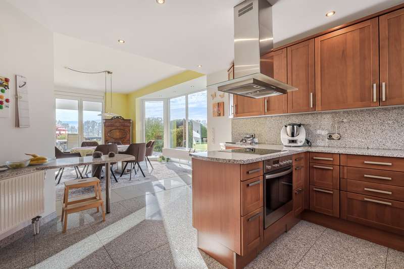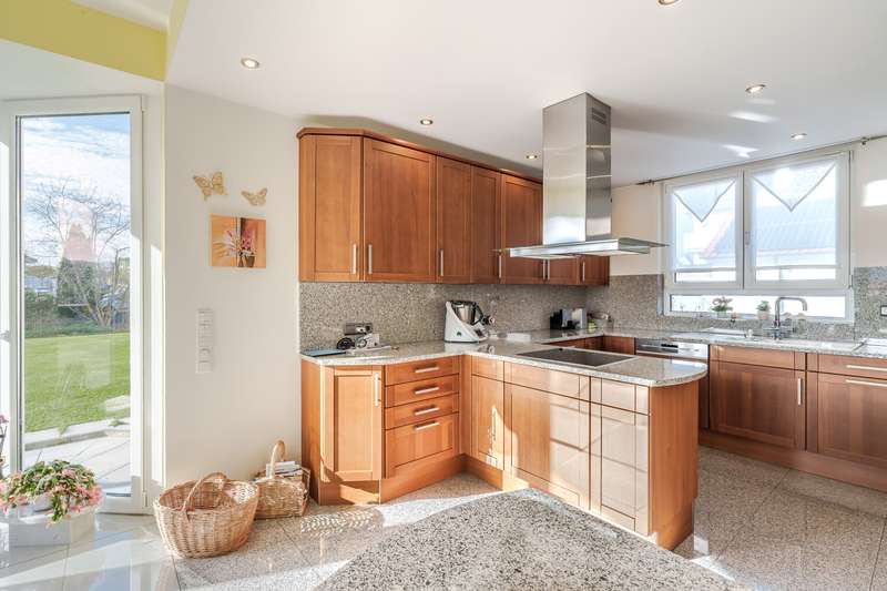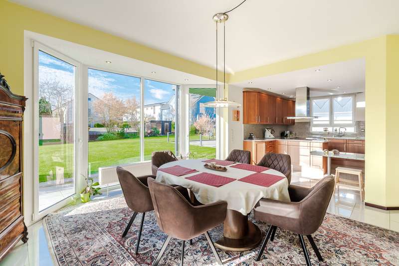 Welcome to a place where exclusivity, unobstructed views and technical perfection merge to create a unique living space. Overlooking the magnificent Hochtaunuskamm, just 10 km from Bad Homburg, this special property welcomes you with a combination of uncompromising technology, sustainable, self-sufficient solutions and stylish living culture that has created a place where the future begins today. The extremely spacious property presents itself as an extremely well-maintained and high-quality equipped property with a living space of approx. 383 m² on a plot of approx. 1,817 m². There is an additional building option on the plot; a preliminary building application was already approved at the time. The house was built in 2001 in high-quality insulated solid construction and has been continuously maintained. The extensive modernizations, most recently in 2025 with a new facade paint job, guarantee contemporary, upscale living comfort. The building has a total of 12 rooms on 4 floors, with 7 spacious bedrooms offering flexible living and usage options - ideal for multi-generational living, large families, part-letting or living and working under one roof. The living space is complemented by five modern bathrooms and a guest WC on the first floor. A bathtub with a view of the Feldberg? No problem in the extraordinary main bathroom on the second floor, which is around 18 m² in size and has floor-to-ceiling windows. In addition to the impressive view from the free-standing bathtub, it also has a large floor-level shower and two washbasins. The well thought-out layout of each floor provides a variety of retreat and communal areas. The rooms impress with ceiling heights of 2.75 meters on the ground and upper floors, the attic floor, which is extended to below the gable, and 2.50 meters in the basement. The kitchen is a central element of each residential unit: a total of four modern fitted kitchens are available in the basement, first floor, second floor and attic, creating flexibility in use and design. Large, mostly floor-to-ceiling windows flood the rooms with natural light. Electric shutters, which can be controlled and automated via an app, and extensive LED downlights ensure comfort and a pleasant ambience. The features also include a smart home system with video surveillance system and Cat7 network cabling. From the roller shutters to the video system and the wall boxes, almost all of the building's technical equipment can be controlled via an app. Sustainability and a self-sufficient energy supply were the focus of the builders: The heating system consists of two modern Stiebel Eltron heat pumps (2020) with heat storage, supplemented by a water softening system and a photovoltaic system (30 kWp) and an 80 kWh storage unit as an emergency power supply. The building services thus meet the highest energy standards, which is also reflected in the A+ energy efficiency rating. You can enjoy the wonderful Taunus view from the two garden terraces on the first floor and basement, the balcony and the secluded roof loggia. The beautifully landscaped garden with a large lawn also has two garden sheds (one with a garden kitchen) and a pavilion. The robotic lawnmower and the 27,000-liter cistern help with garden maintenance. Two double garages (including wall boxes), an elaborately paved courtyard with additional charging points and parking spaces for ten cars are available for vehicles. The property's perimeter is 1.60 m high in the southern part and 1.40 m high elsewhere, and the spacious grounds can be easily accessed via an electric gate. See for yourself the wide range of possible uses - a viewing is well worthwhile.