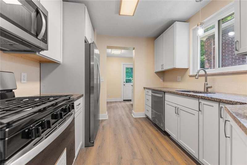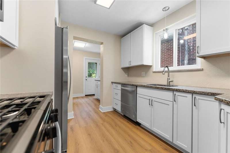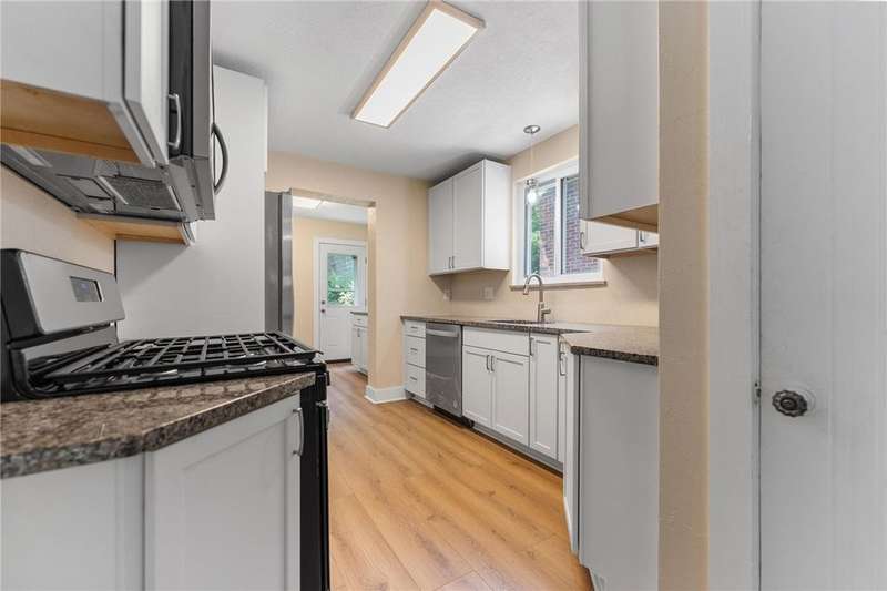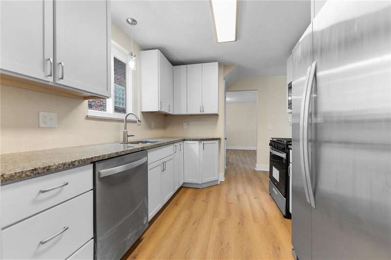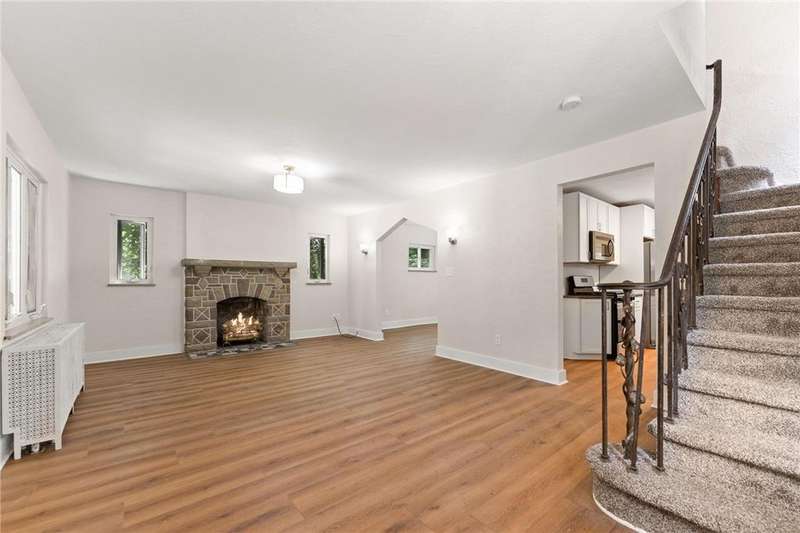 Spectacular and super charming stone home that looks like it's straight from a fairy tale but its real ! Entire interior has been redone. So many updates ! Namely, Top quality vinyl floors, freshly painted, high ceilings , new light fixtures & generous room sizes and so much natural light in all rooms! Kitchen has brand new appliances, granite counter tops and the cutest pantry/eat in breakfast nook ! Kitchen has a back door to the wooded back yard ! All bedrooms are quite large and have ample closet space. Full bath is completely new ! The basement is very large has so many options ! Features include separate laundry room, half bath, huge storage space and access to garage ! Third floor is a flex space and is a walk up ! Location is key here ! Minutes to the T, Bus lines ,Liberty ave and Banksville road make commuting or going to the airport a breeze!