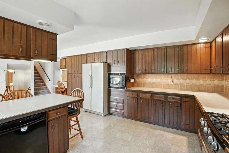 Extraordinary Builder Home on Expansive Curved Lot!Don't miss this rare opportunity to own a custom-built home on an extraordinary oversized, curved lot designed for space, functionality, and comfort. Step inside to a grand walk-in entry that leads up just three steps to a stunning open-concept kitchen and living area--perfect for entertaining.The ground-level family room features a cozy fireplace with a wood stove insert, and offers flexible living potential with a private 4th bedroom, full bath, and its own entrance--ideal for a guest suite or mother-in-law space.A fully finished basement adds even more living space, along with a large laundry room and a generous crawl space offering abundant storage. Upstairs, you'll find three spacious bedrooms and two full bathrooms, providing ample room for family or guests.Car lovers, hobbyists, or outdoor adventurers will love the attached 21/2-car garage plus an additional 21/2-car garage with high ceilings, electricity--perfect for campers, boats, or workshop space.Enjoy outdoor living on the expansive, two-level covered patio, with two patio doors on different levels--great for gatherings or quiet mornings. This home is equipped with a dual-zoned furnace for maximum comfort and efficiency.This one-of-a-kind builder home offers exceptional space, thoughtful design, and unbeatable storage--all nestled in a peaceful, well-established neighborhood.