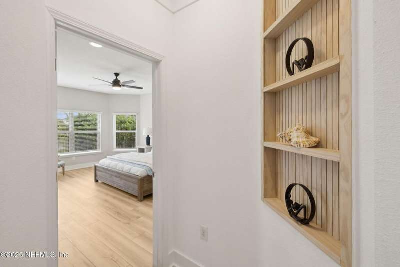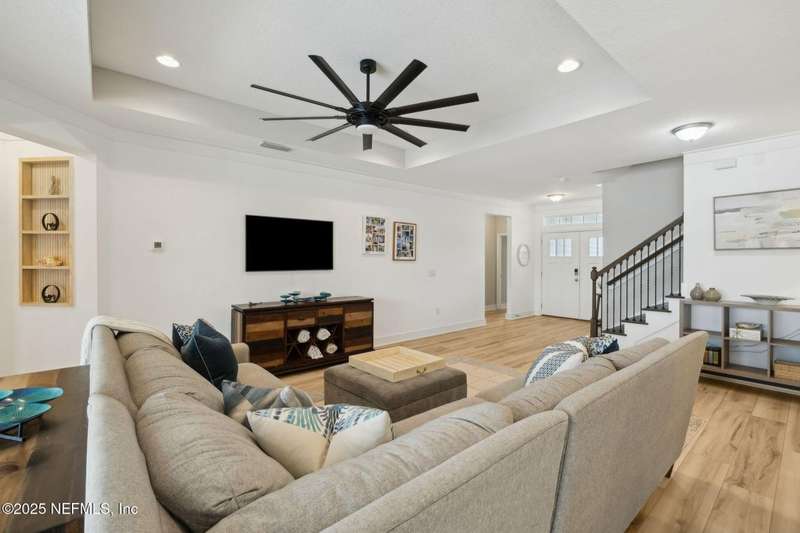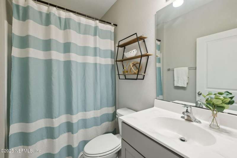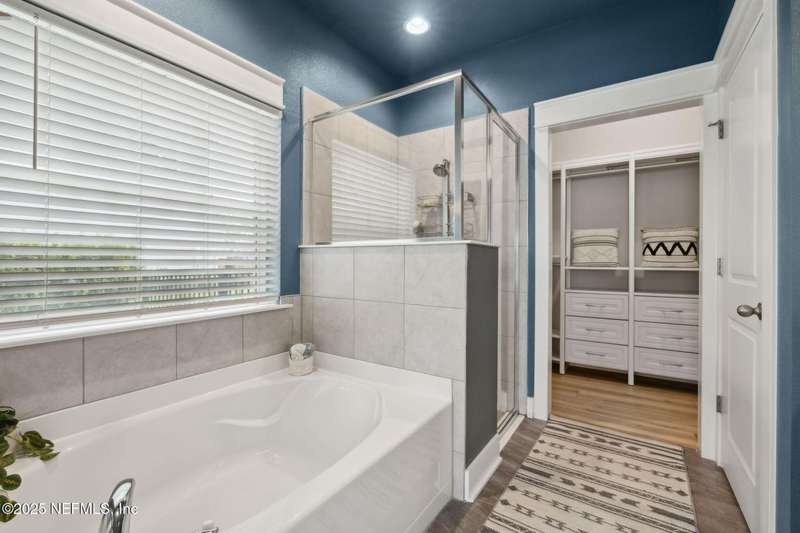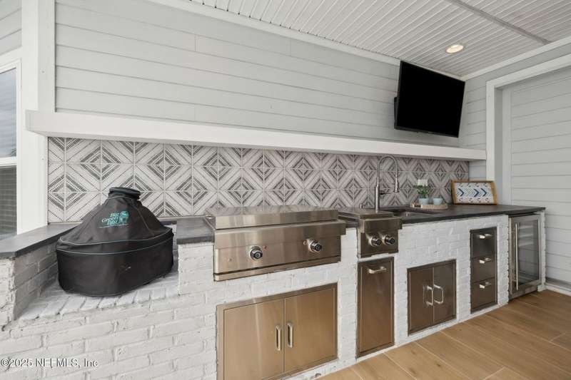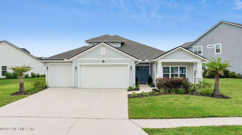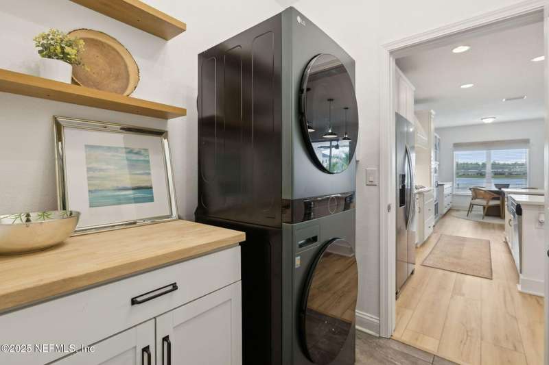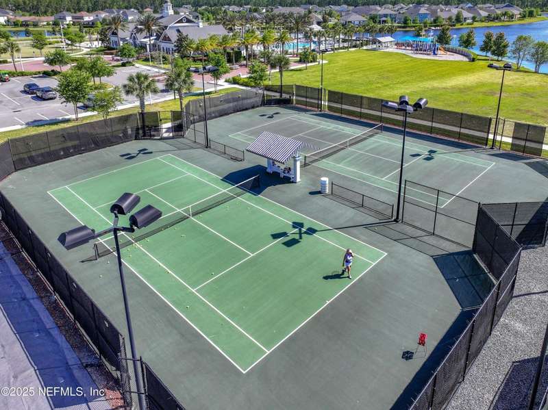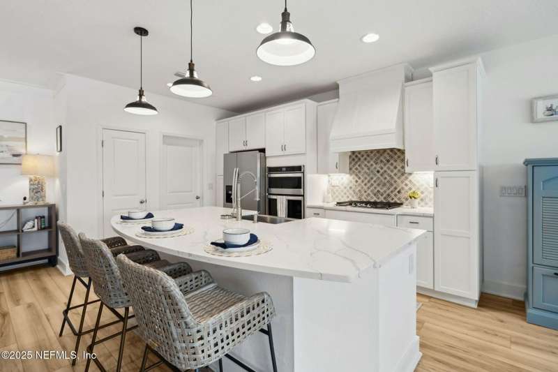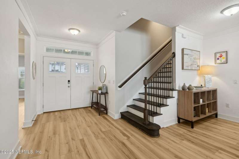 Come fall in love with this stunning pool home located on a peaceful lake in the highly desirable community of Beacon Lake. Vacation in your own backyard!! Pool is heated AND cooled so you can swim year round. Pool features a sun deck with built in recliners, large spa and all surrounded by a marble patio. Custom summer kitchen has green egg, gas flat top grill, dbl burner, fridge and sink. Step inside to this stunning home w/ upgraded LVP floors throughout the home. Chefs kitchen w/ large island, tile backsplash opens to eat in area w/ custom cabinets overlooking the oversized family room and all opening to covered patio with fenced yard and incredible views. Master suite is a dream with glamour bath with oversized walk in shower, dbl vanities and closet w/ organizers. Two more bedrooms on first floor. Upstairs is large bedroom/2 closets/full bath and a balcony overlooking backyard. Home is within walking distance to K-8 school, amenity center with its stunning Lakehouse!