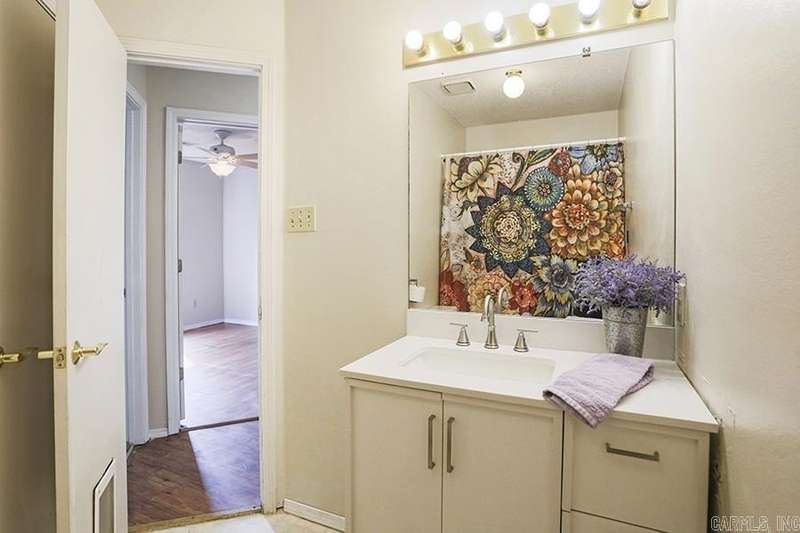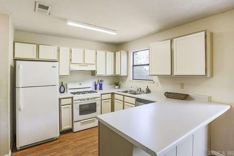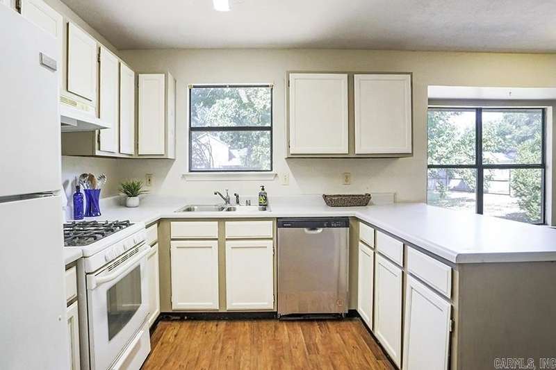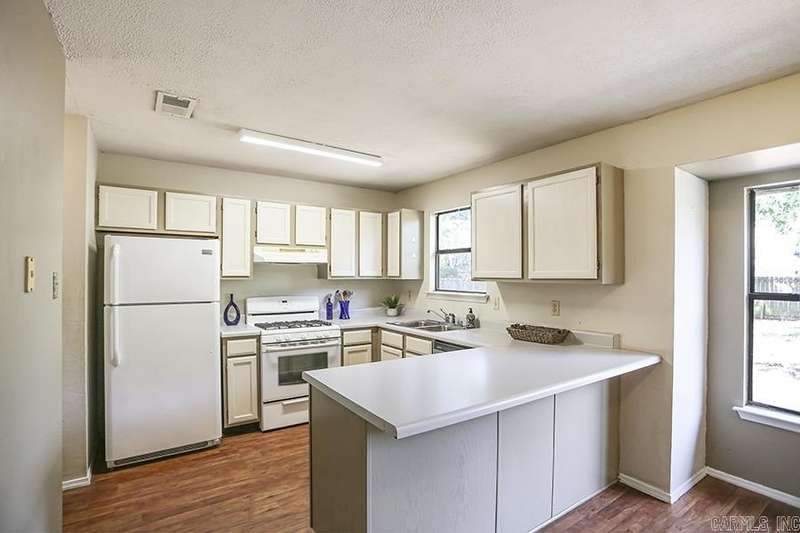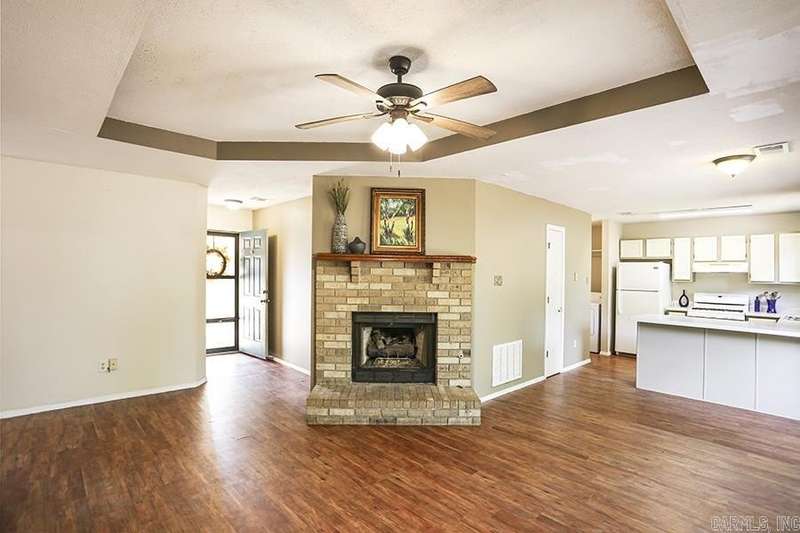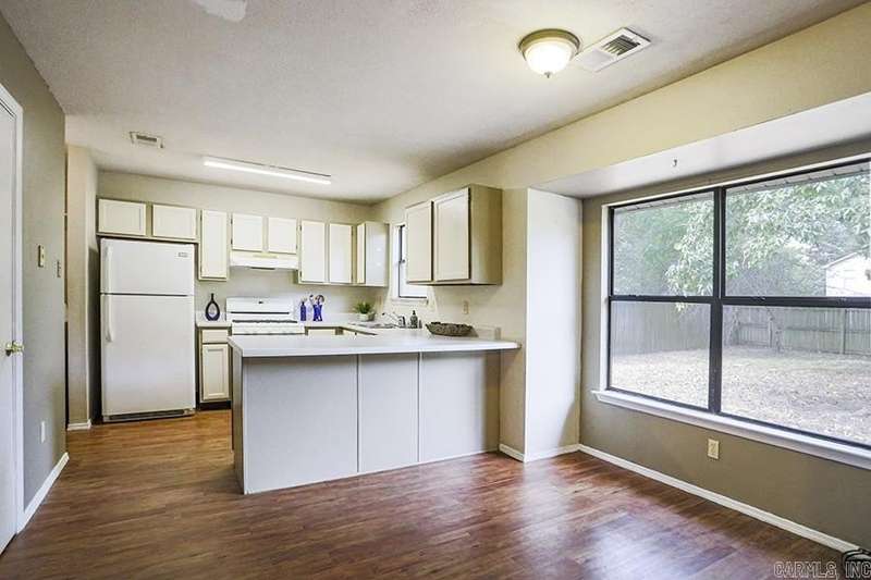 Little gem in the heart of Bryant! Enjoy life in this cute one story on a flat, quarter acre lot, in a quiet neighborhood. Yet so very close to schools, restaurants, shopping and easy access to I-30. Living space has laminate flooring, gas fireplace, lots of windows for natural light & open to the Kitchen and Dining Space. Kitchen has a nice pantry, breakfast bar, gas stove, refrigerator, and sink with window overlooking the back. Primary suite has soaker tub/shower, linen closet and double closets. Large back yard has mature shade trees, a patio and is fully fenced. New Roof in July '25.
