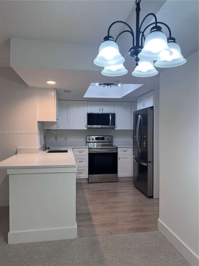 Completely renovated from top to bottom 2/2 with attached garage all on the first floor. This unit features a new kitchen with quartz countertops, new stainless steel appliances, new bathrooms, new AC and water heater. Carpet in bedrooms and living area. Fenced patio off the living room. Parking for 1 car inside garage and one car outside garage. Split bedroom plan, 2 master suites. The community features a resort style pool, clubhouse, BBQ area and gym.