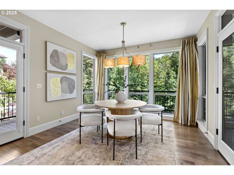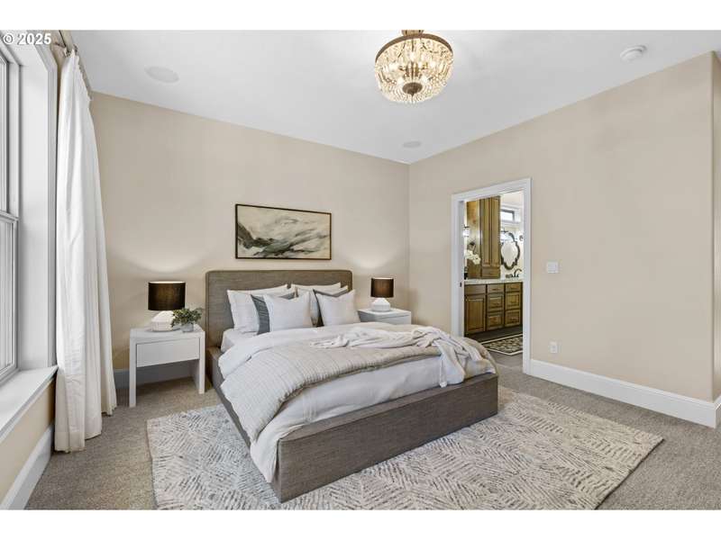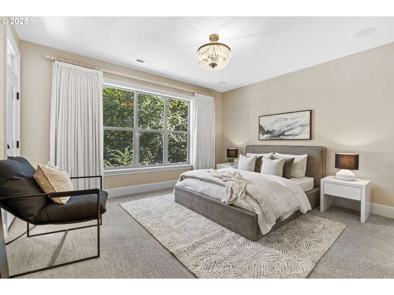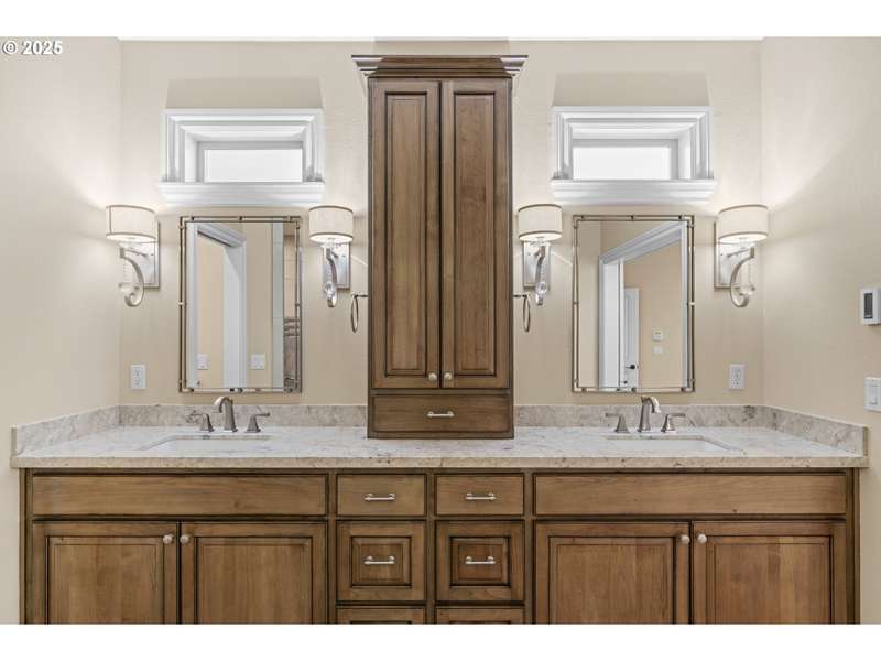 Nestled on a quiet cul-de-sac & backing to a peaceful, tree-lined greenbelt, this exceptional home offers 3,135 square feet of refined living on nearly half an acre. The home is the proud Clark County Parade of Homes recipient of “Best in Show,” “Best Livable Floor Plan,” & “Best Landscaping." The expansive open-concept great room is anchored by vaulted ceilings, a dramatic floor-to-ceiling tiled fireplace, and custom built-ins, with massive windows that flood the space with natural light. A state-of-the-art Control4 system offers fully integrated smart home technology, including lighting, climate, audio, security, and intercom controls. The designer kitchen features a quartz and butcher block island, Italian Dolomite marble backsplash, glass cabinet handles, premium Dacor appliances, over-range pot filler, LED under-cabinet lighting & dual pantries. The adjoining dining area flows seamlessly to the outdoor living space, making entertaining effortless year-round. Two main-level ensuite bedrooms offer spa-inspired bathrooms with zero-entry showers, marble countertops, radiant heated floors, and direct access to the outdoors. Upstairs, you’ll find a third bedroom, full bath with skylight, and a vaulted-ceiling fourth bedroom or bonus room/flex space. The dedicated office features custom built-in desks and cabinetry. Out back is a wraparound deck and a vaulted covered outdoor kitchen complete with built-in BBQ, beverage fridge, wine cooler, gas space heater, ceiling speakers, & TV hookup—ideal for outdoor gatherings. The professionally landscaped yard is illuminated with programmable LED lighting. Additional features include hot/cold water hookup in garage, central vacuum system, tankless H20 heater, & triple-pane windows. Blending timeless craftsmanship with 21st-century modern luxury, here is your rare opportunity to own one of Felida’s finest homes.