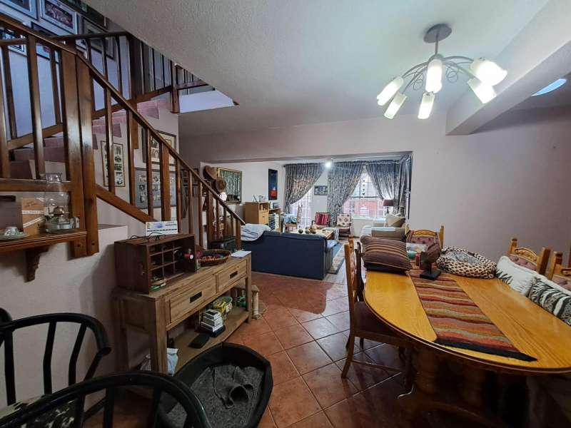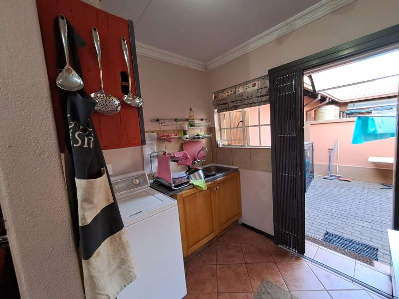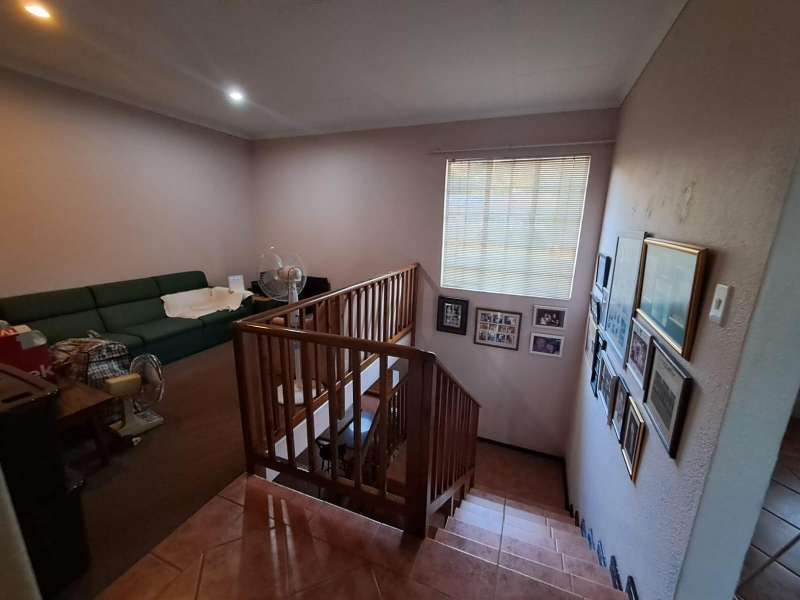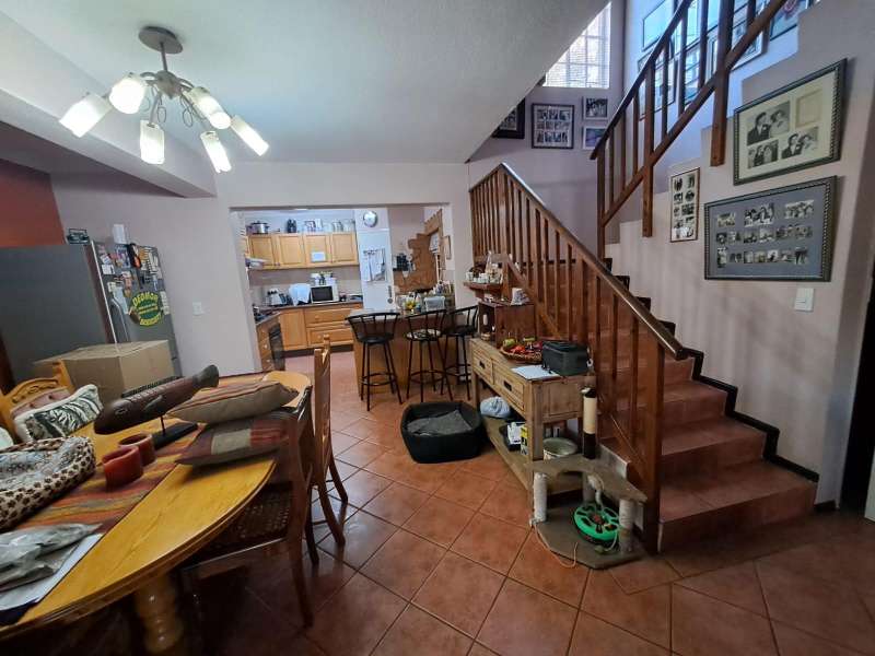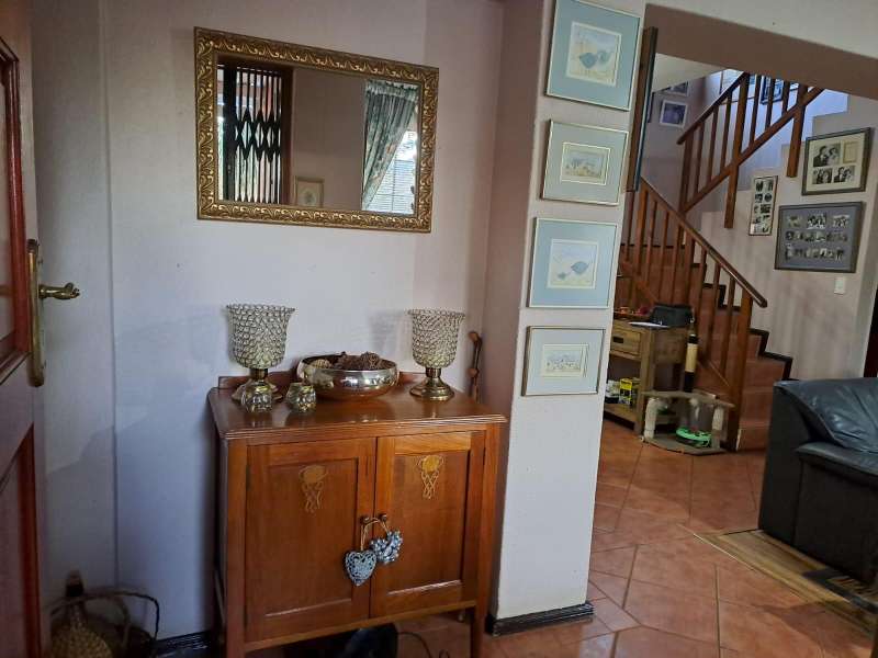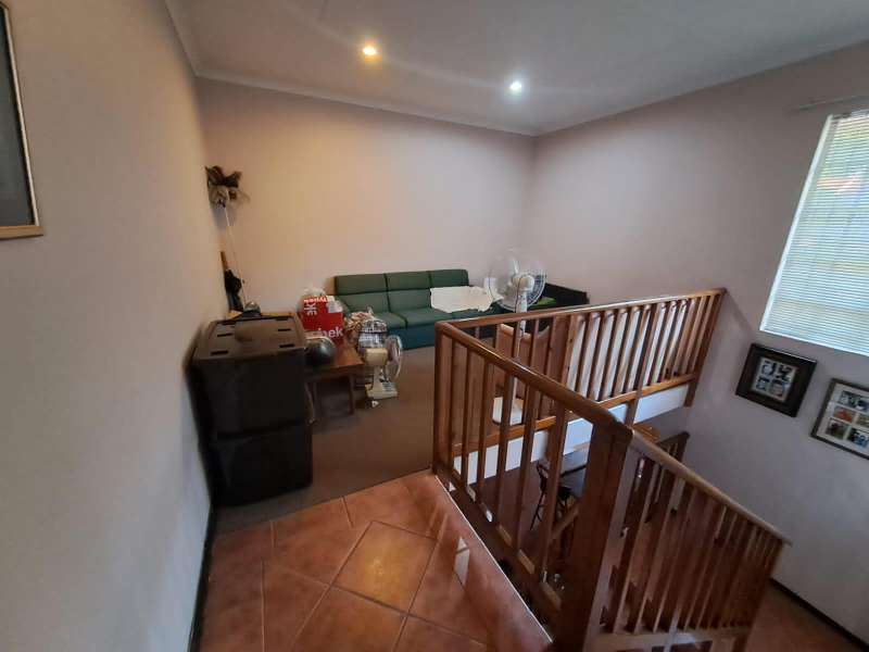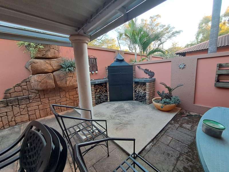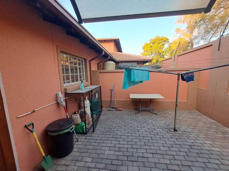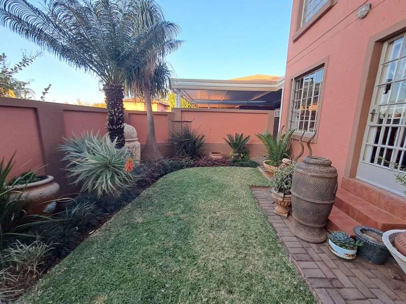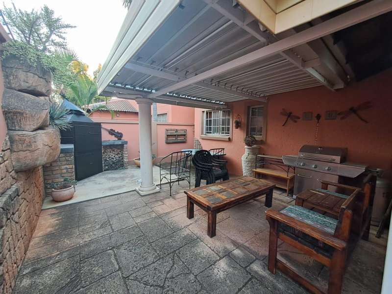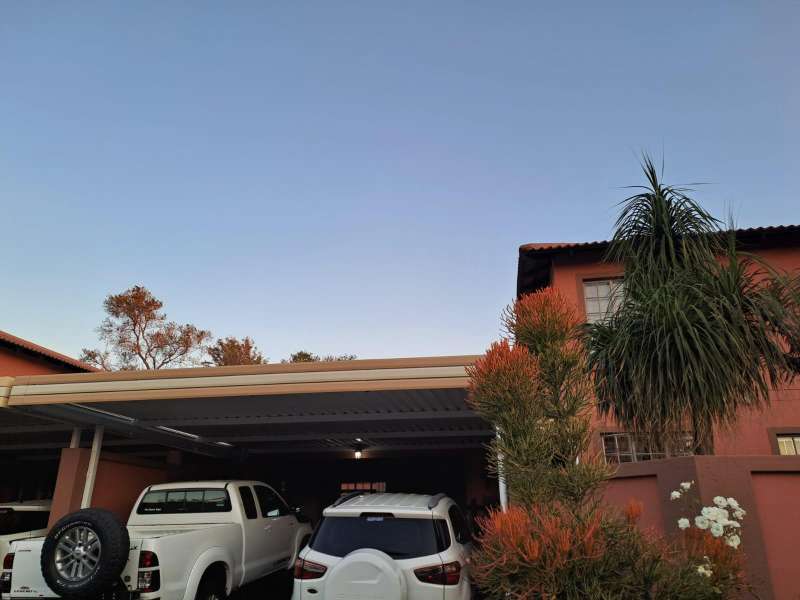 PICTURE PERFECT 3 BEDROOM FAMILY HOME IN A SAFE AND SECURE COMPLEX BOOK YOUR EXCLUSIVE VIEWING APPOINTMENT TO AVOID DISAPPOINTMENT This welcoming beautiful tree lined Estate is well managed ensuring safety and security of Residents are top of mind. Awake to beautiful bird song in the morning and enjoy early morning tea or coffee in this beautiful manicured garden, absolute bliss, calm and serenity. From the garden you enter the front door into the well appointed open plan lounge with laminated flooring and a generous sized dining room where you can host lavish dinner parties and family get togethers which leads onto the well appointed tiled kitchen fitted with a gas stove, enough space for all your appliances, scullery and pantry which are essential to complete this lovely kitchen. The stairway leads to a pajama lounge, the space being rather versatile with various options to either use it for a TV lounge or study area You will find two well-appointed carpeted bedrooms fitted with built-in cupboards and each enjoy their own designated bathroom. One bathroom has a toilet, basin and shower and the other furnished with a bath and basin which is a nice to have should you have an extended family. Stepping out from the kitchen there's a paved courtyard with a swivel wash line and wash trough and the path winds towards the irresistible and rather private entertainment area fitted with a louvre deck roof ensuring for the perfect hosting experience, no matter the weather come rain or sunshine, spacious and welcoming fitted with a built-in braai. You are immediately drawn to spend time in this calm and beautiful manicured garden. This is the ultimate outdoor living experience enhancing the outdoor versus indoor living experience. There's a double garage and double carport ensuring ample parking space. Prepaid Electricity and Levies include water and Building Insurance. If this sounds like your forever home, why not give me a call to avoid disappointment.
