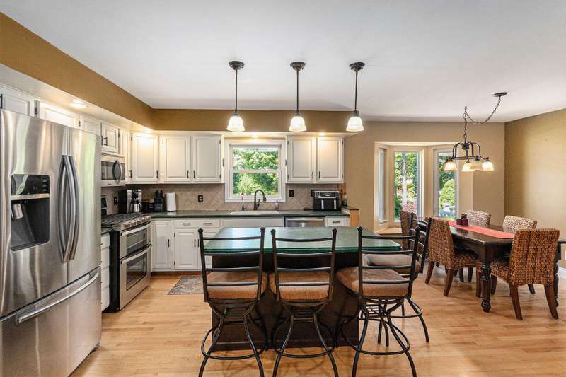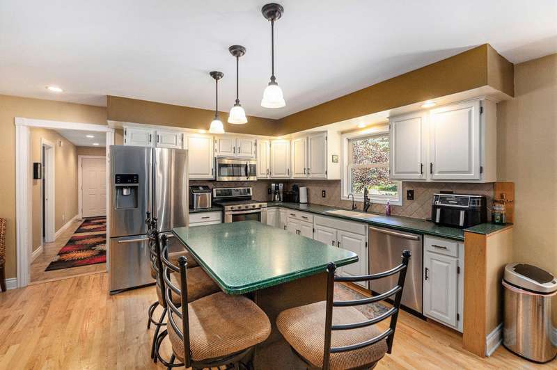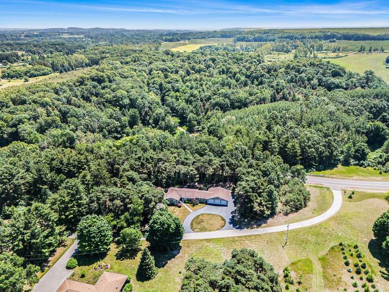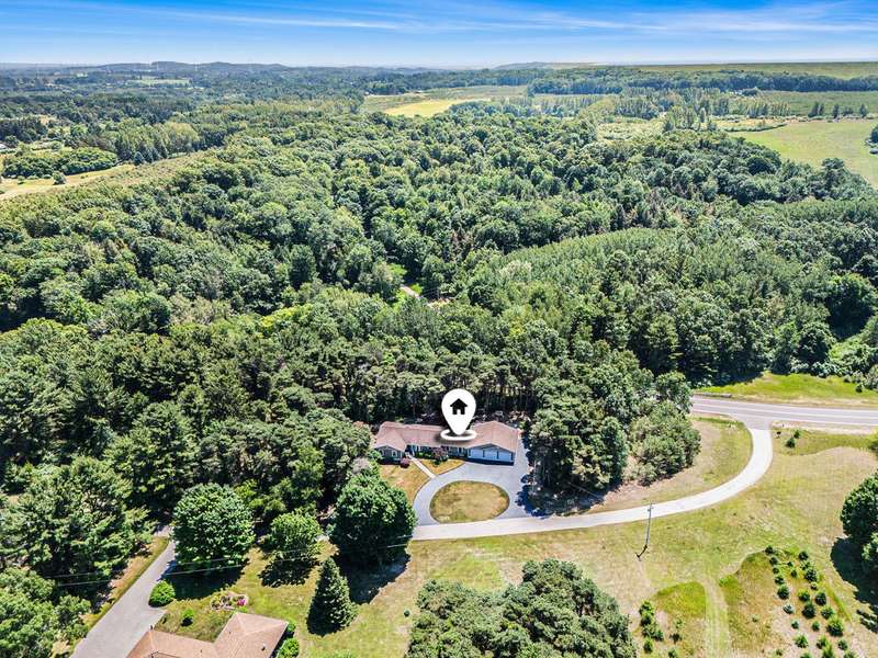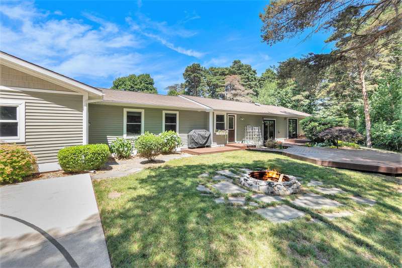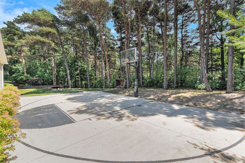 NEW PRICE!!! MUST SEE THIS GORGEOUS 5 bed, 4 bath ranch on a private drive, 2 miles from public access to Lake Michigan. Enjoy the beautifully landscaped backyard with fire pit, huge deck, and basketball court, in addition to the oversized 3 stall garage. The main floor features dining area, fully applianced kitchen, walk in pantry, and family room with sliders to the deck. Located conveniently down the hall, there are 2 bedrooms, full bath, and the primary bedroom with ensuite. The basement offers a large family room with built in bookshelves and a large rec room. The 4th bedroom and full bath complete the lower level of this incredible home.