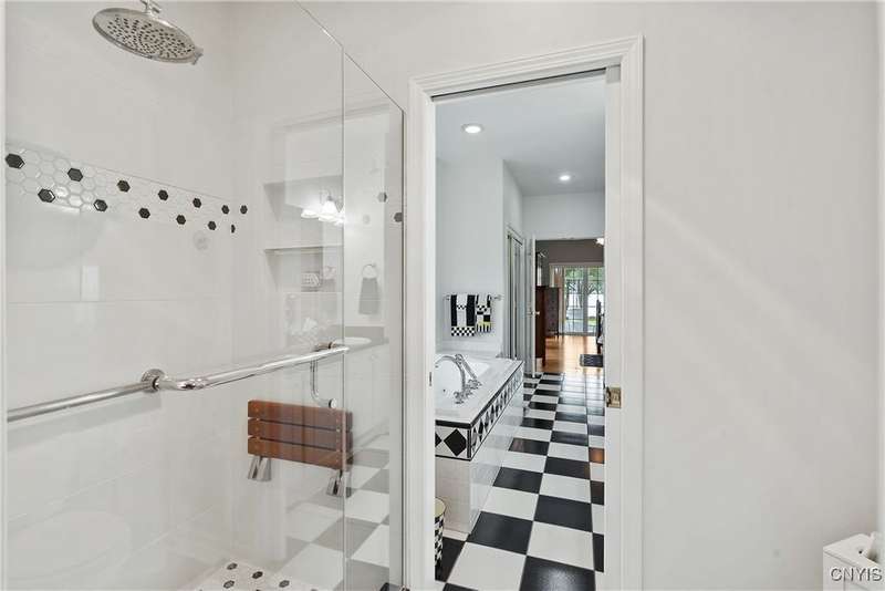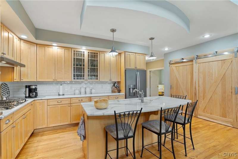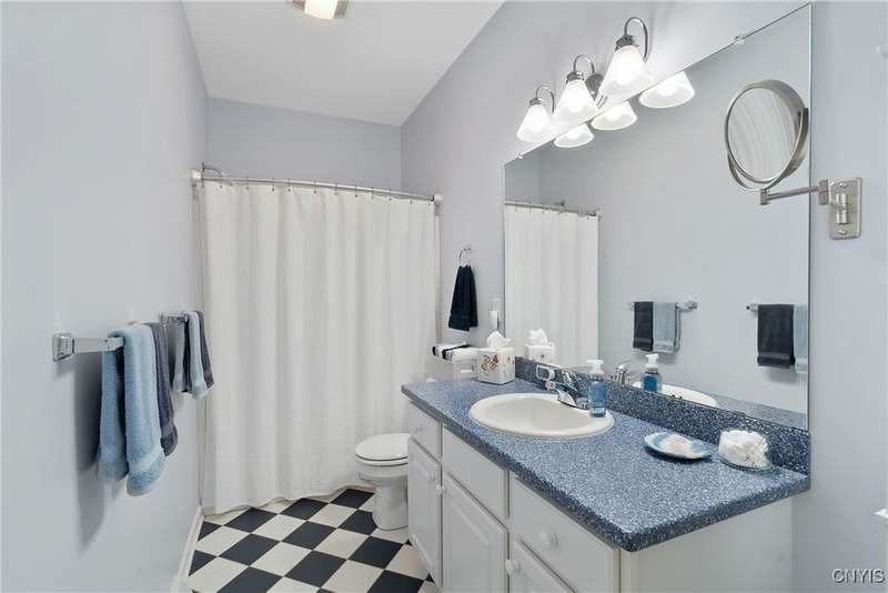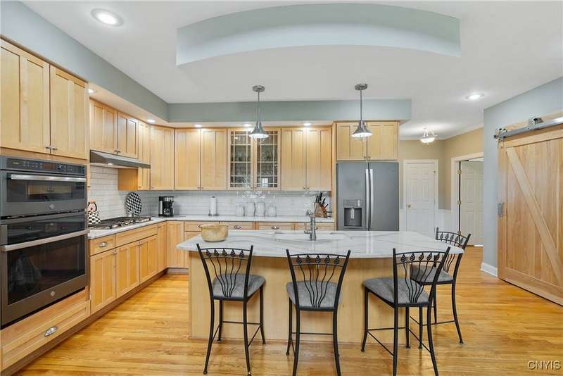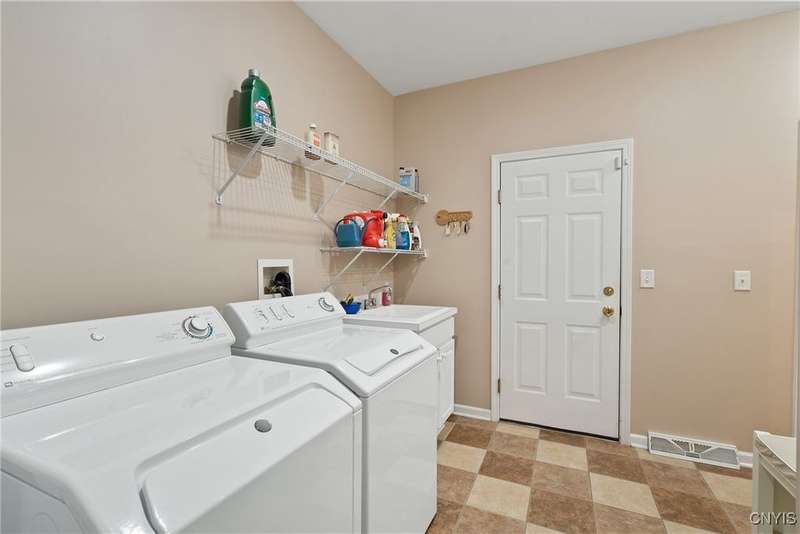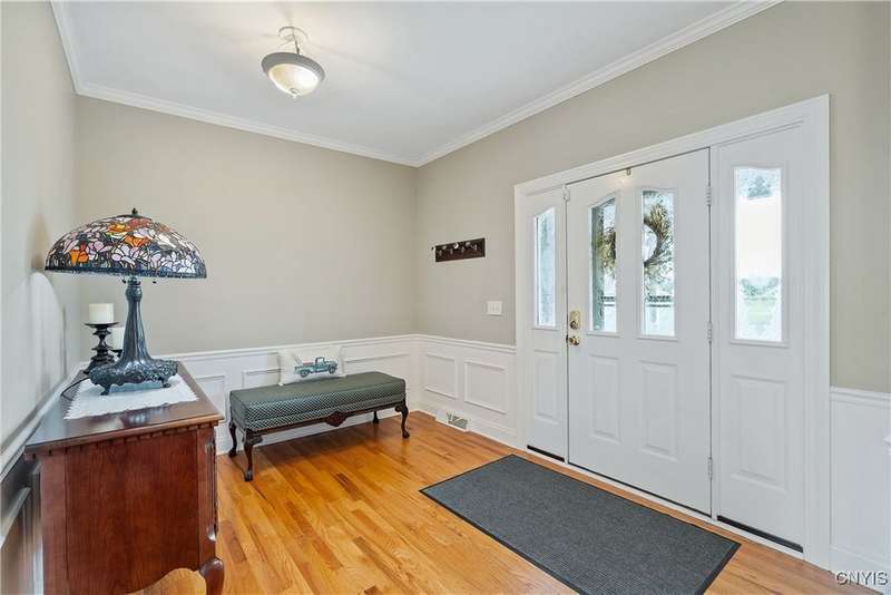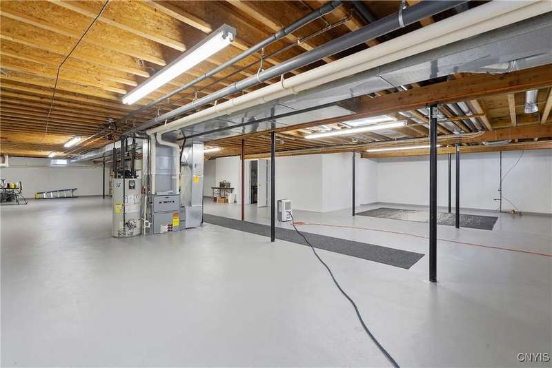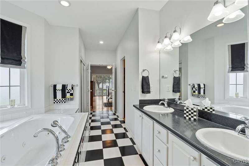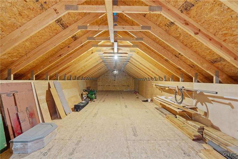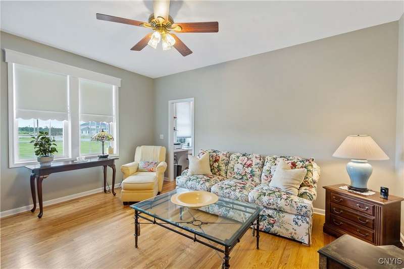 Located on nearly 2.5 acres in a beautifully maintained neighborhood, and offering approximately 214 feet of stunning water frontage on the south shore of Oneida Lake, this property offers stunning panoramic views that stretch endlessly in every direction. This one owner custom built stunning four-bedroom ranch offers a perfect blend of comfort and style. The home features two enclosed patios with spectacular views of the lake, ideal for relaxing or entertaining, complete with a hot tub for ultimate relaxation. The blonde maple kitchen cabinets complemented by elegant quartz countertops add a touch of modern sophistication. A charming handmade barn door leads to the pantry, adding rustic charm. The living room impresses with soaring cathedral ceilings accented by beautiful Hickory beams. The primary suite offers a large walk-in closet, full bath, and office nook leading to another bedroom, private den, or family room. Completing the main floor are two additional bedrooms and 2 full baths, with each room having endless views of the lake. The full basement is spotless and dry with epoxy floor and fully waterproofed. Also included on the property is a 1500 sq. ft. 2nd garage with a 12 x 14 ft overhead door, perfect for your auto and recreational needs. The heated garage is equipped with a bathroom, car lift and ample workspace, ideal for car enthusiasts with drains for washing your toys! There's plenty of room to store boats, jet skis, snowmobiles! Upstairs is an additional 700 sq. ft of space waiting to be customized - whether you envision a studio, workshop, or income potential with an airB&B guest suite, the possibilities are endless. Flood Insurance is NOT required! Don't miss out on this opportunity to own this exquisite property and all that lake living has to offer!