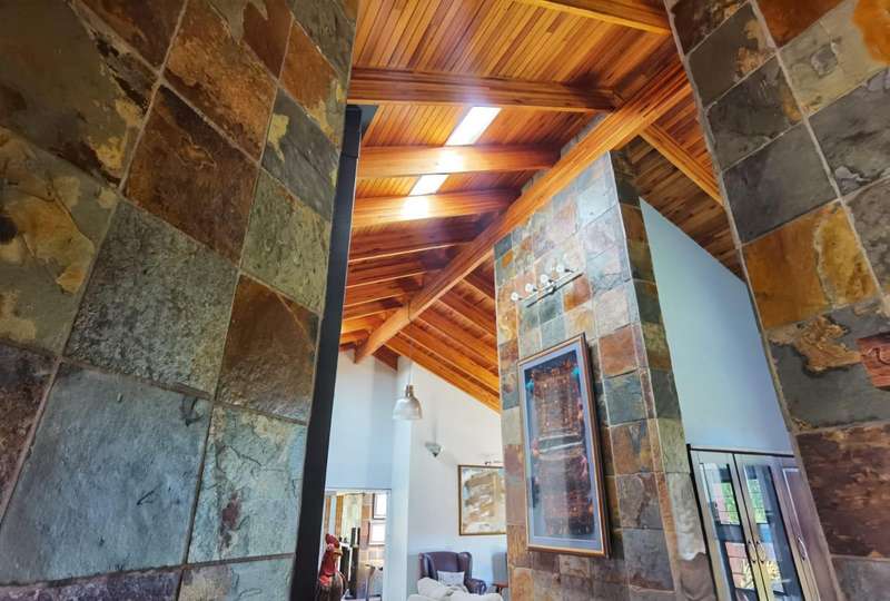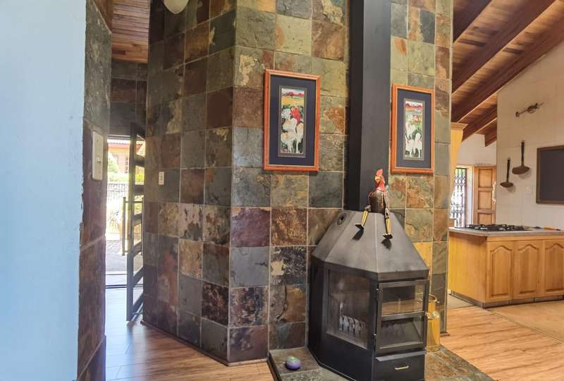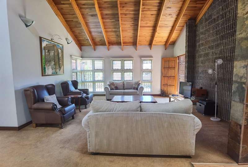 Welcome to a truly unique residence nestled within an exclusive estate, where refined elegance meets modern convenience. This expansive double-volume home is a masterpiece of style and functionality, offering an living experience for those who appreciate space, sophistication, and comfort. Upon entering, you're welcomed by a entrance hall that sets the tone for the home's spacious layout. The main living areas include an inviting lounge and dining room. The heart of the home is the kitchen, generous built-in cupboards, a walk-in pantry, and a dedicated laundry area. Just off the kitchen, a well-appointed guest toilet adds convenience, perfect for entertaining guests. The residence boasts four beautifully appointed bedrooms, each with an ambiance of tranquility and ample built-in storage. Two of the bedrooms feature en suite bathrooms, offering privacy and convenience for family members or guests. The main bedroom is a true retreat, complete with a spacious walk-in cupboard, ideal for a refined dressing experience. A total of three bathrooms are spread throughout the home, designed with meticulous attention to detail and modern finishes, providing both style and functionality. Designed with versatility in mind, this home includes a study, perfect for those who work from home or desire a quiet sanctuary for personal projects. There is also ample storage throughout, ensuring every item has its place. For added warmth and ambiance, two fireplaces adorn the living areas, creating cozy spaces to unwind in the cooler months. Step outside to enjoy a covered patio that extends the living space outdoors, where scenic views of the surrounding landscape provide a serene backdrop. This property is a pet-friendly haven, perfect for the entire family, with a scenic garden that features an irrigation system, ensuring the grounds remain lush and vibrant year-round. Additional highlights include inverters for uninterrupted power, water tanks for sustainable water storage, and an open parking area in addition to the two secure garages. Living in this prestigious estate also means access to top-tier amenities, including a communal pool, clubhouse, and a golf course, enhancing the lifestyle on offer. For added peace of mind, the estate is equipped with CCTV surveillance, providing a secure and serene environment. This property is ideal for those seeking a distinguished home in a prestigious location. Enjoy a life of luxury, convenience, and security in this stunning double-volume estate residence.