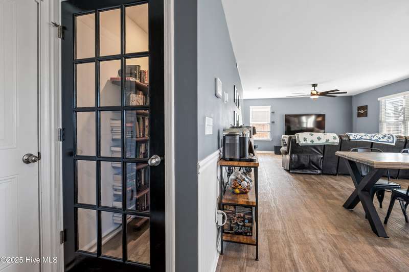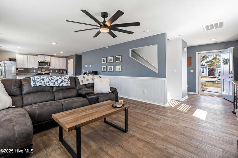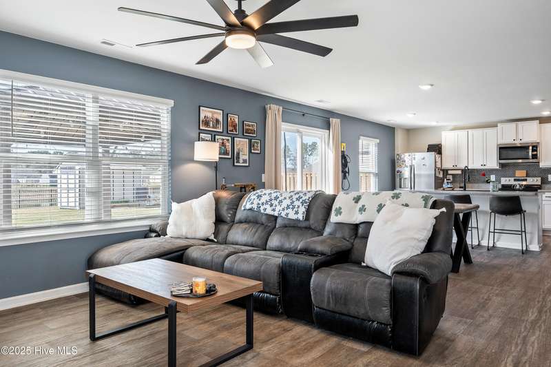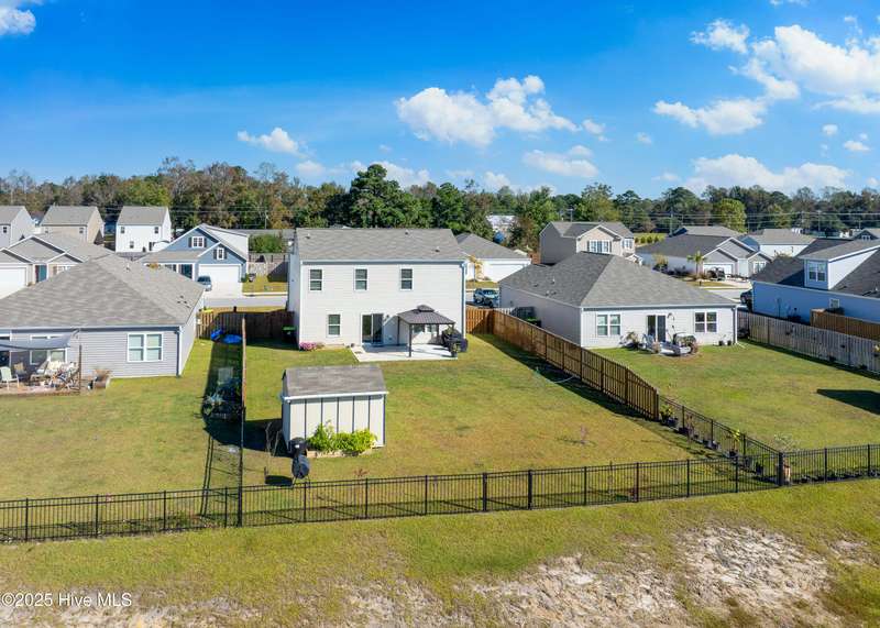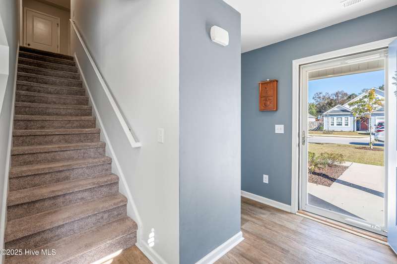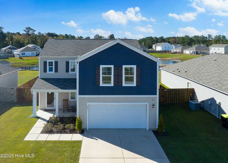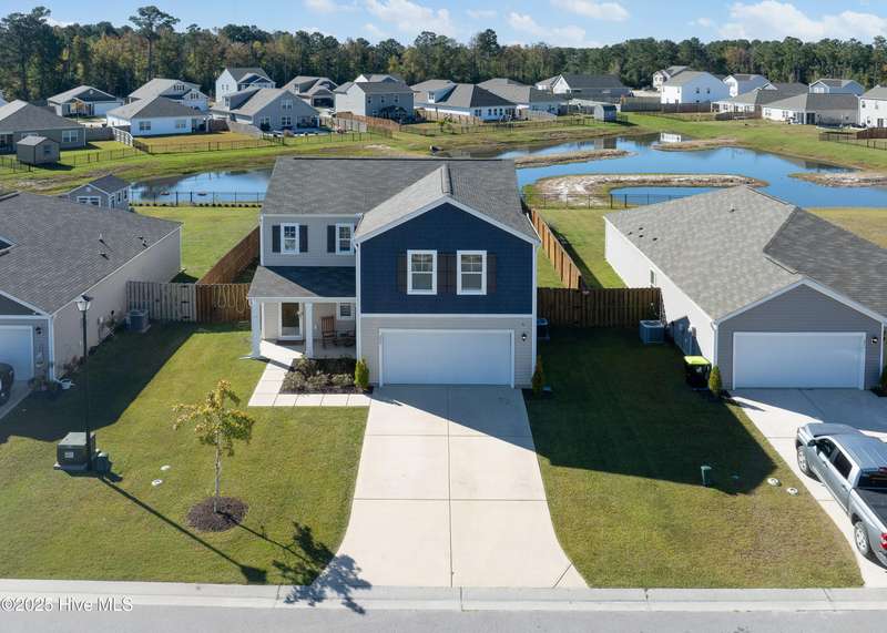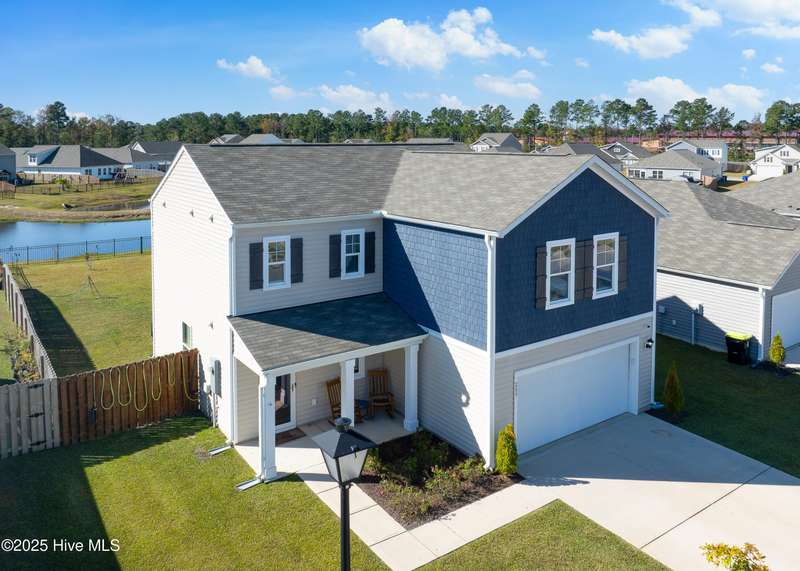 Discover modern comfort and effortless style in one of Holly Ridge's newest communities, Folkstone Heights. Conveniently designed living space, features 4 bedrooms and 2.5 baths. Step inside to an open-concept layout that blends spacious living, dining and meal prep with a chef-inspired kitchen that shines with stainless steel appliances, a large center island, and a walk-in pantry for plenty of storage. A convenient half bath and a unique library nook add both function and personality to the main floor. Upstairs, you'll find a generous owner's suite, complete with ample closet space and a private bath, along with three additional bedrooms, full bath and a convenient laundry room. Step outside to a private backyard retreat, featuring a covered, enlarged patio that's perfect for relaxing or entertaining. The privacy fence and black powder-coated aluminum fencing create a serene setting with pond views, ideal for morning coffee or evening gatherings.Prime locationclose enough to walk to school, 10 minutes to beaches and golf, and just 5 minutes to groceries, pharmacies, and fun family activities. Some wall items will be removed prior to closing - ask la for list.