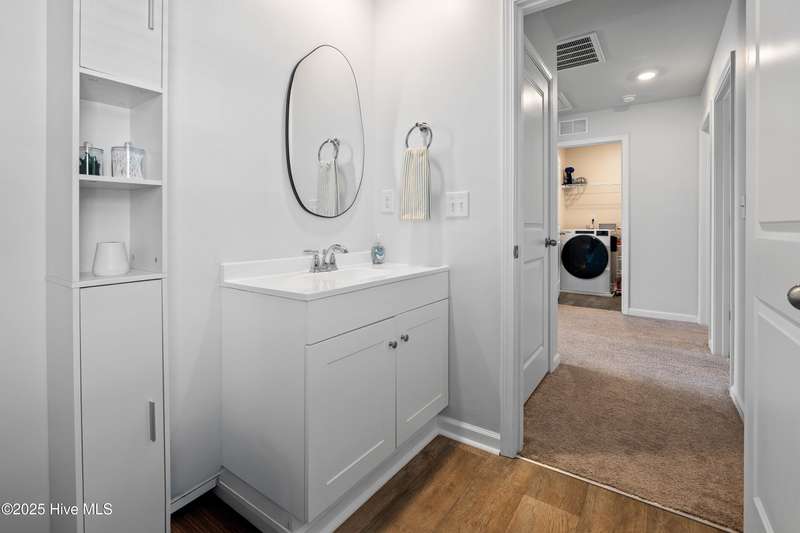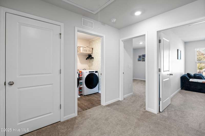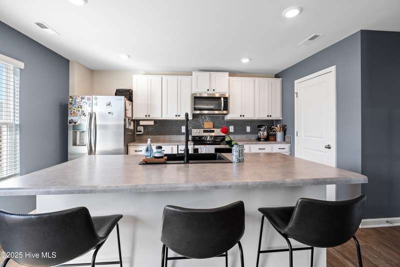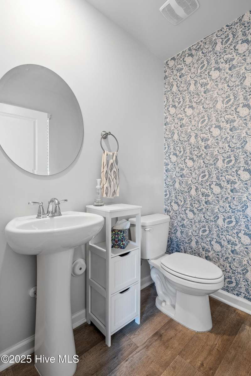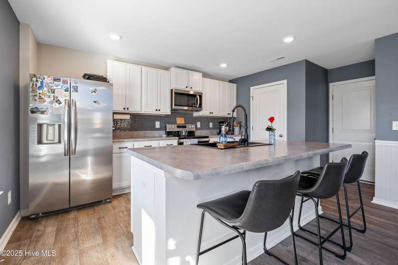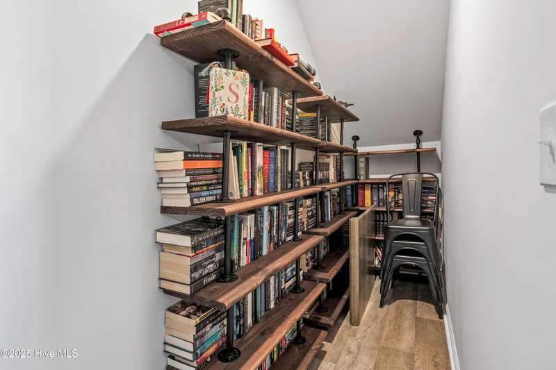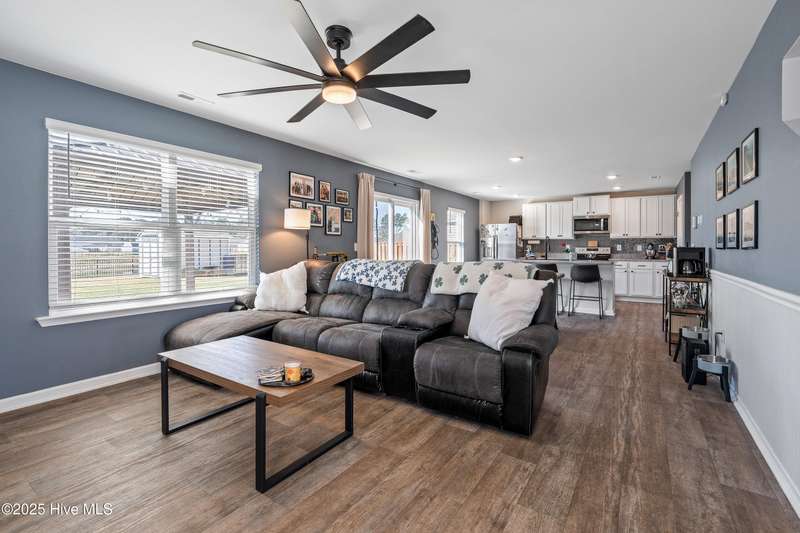 Discover modern comfort and effortless style in one of Holly Ridge's newest communities, Folkstone Heights. Conveniently designed living space, features 4 bedrooms and 2.5 baths. Step inside to an open-concept layout that blends spacious living, dining and meal prep with a chef-inspired kitchen that shines with stainless steel appliances, a large center island, and a walk-in pantry for plenty of storage. A convenient half bath and a unique library nook add both function and personality to the main floor. Upstairs, you'll find a generous owner's suite, complete with ample closet space and a private bath, along with three additional bedrooms, full bath and a convenient laundry room. Step outside to a private backyard retreat, featuring a covered, enlarged patio that's perfect for relaxing or entertaining. The privacy fence and black powder-coated aluminum fencing create a serene setting with pond views, ideal for morning coffee or evening gatherings.Prime locationclose enough to walk to school, 10 minutes to beaches and golf, and just 5 minutes to groceries, pharmacies, and fun family activities. Some wall items will be removed prior to closing - ask la for list.