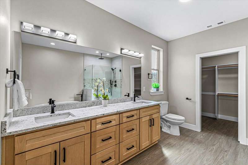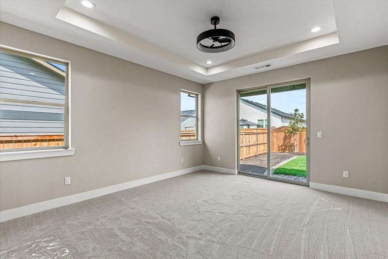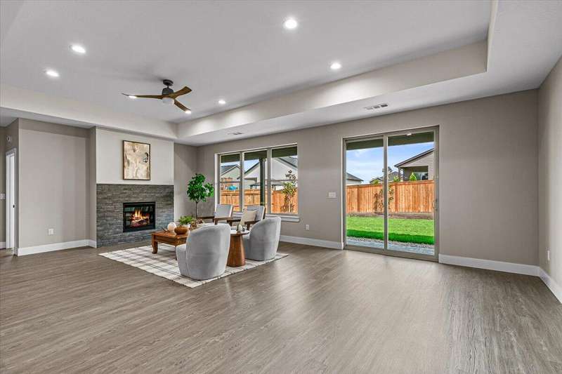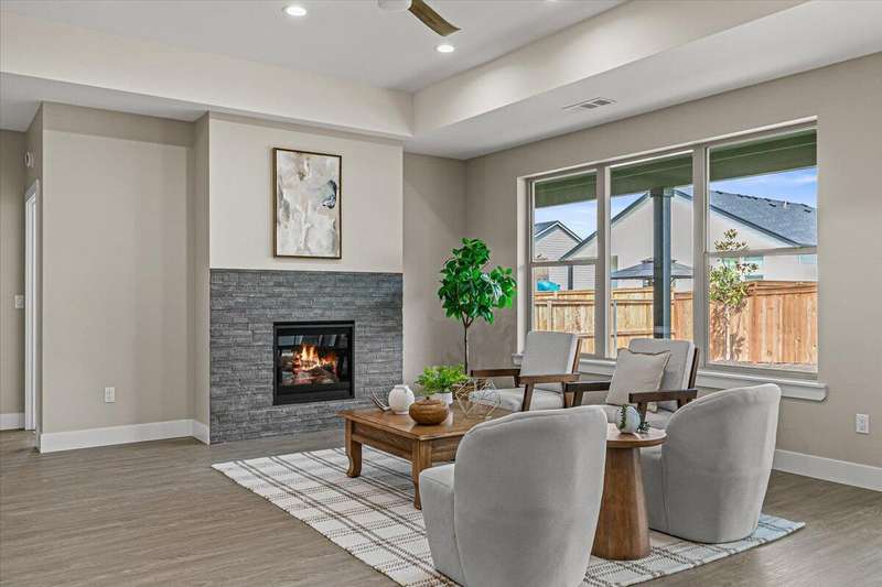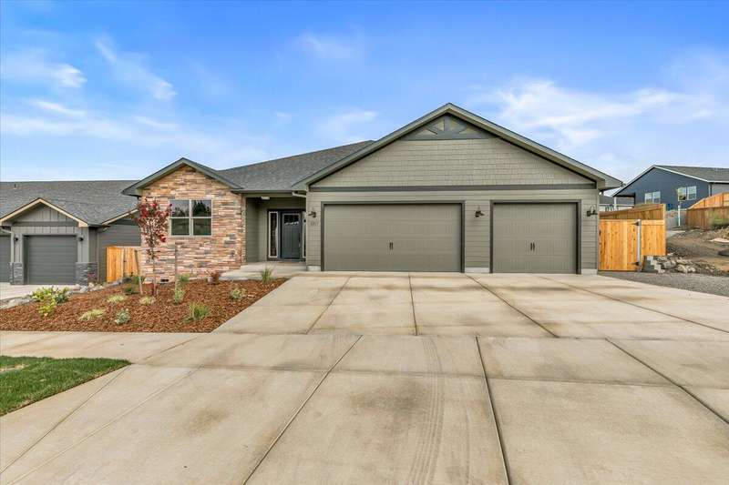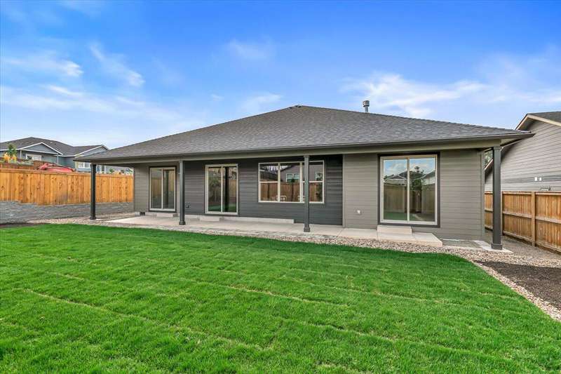 Brand new 2025 home in the desirable Cedar Landing Development! Showcasing 2,481 sq ft of exceptional craftsmanship, this modern open-concept design is filled with natural light and refined details throughout. Ideal for multi-generational living, the smart split-floor layout features TWO elegant primary suites—each dual sinks, tile showers, large closets, plus 2 additional bedrooms for family, guests, or office use. Enjoy 3 full bathrooms, custom cabinetry, stylish kitchen w/ large island, a spacious laundry room, and a generous pantry for optimal storage. The inviting living area centers around a gas fireplace, creating a warm, welcoming atmosphere. Step outside to a large covered patio, perfect for year-round entertaining or quiet relaxation. Additional highlights include a 3-car garage, professional landscaping, and quality finishes throughout—offering the perfect blend of beauty, comfort, and functionality.