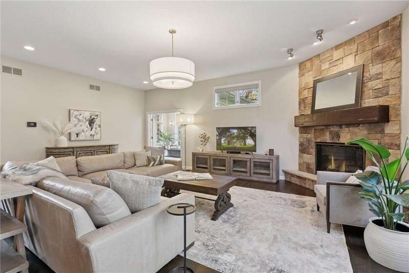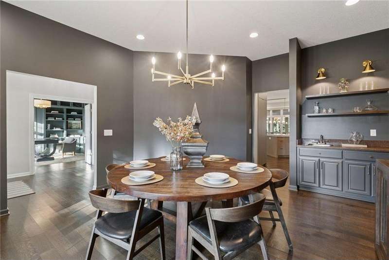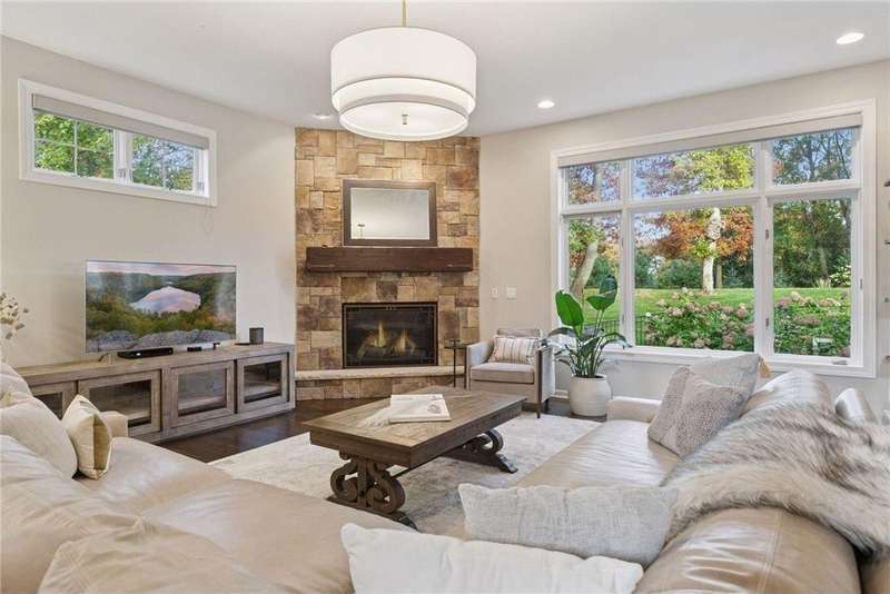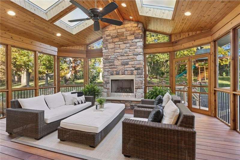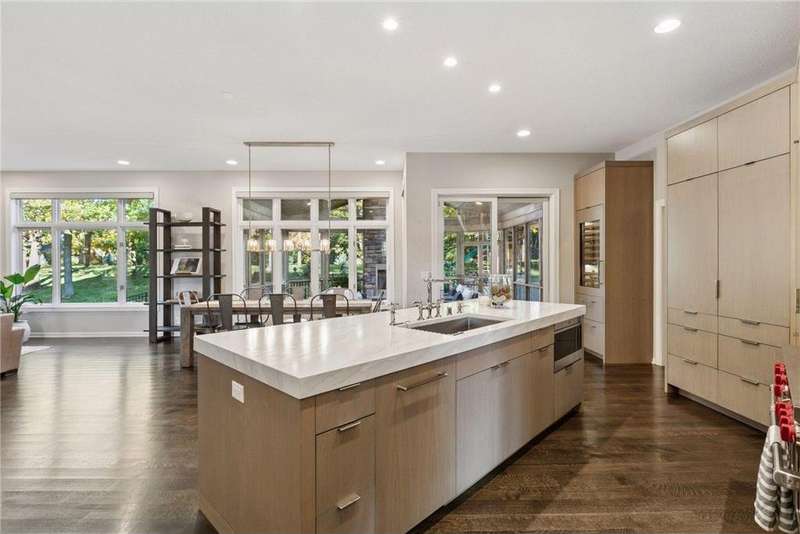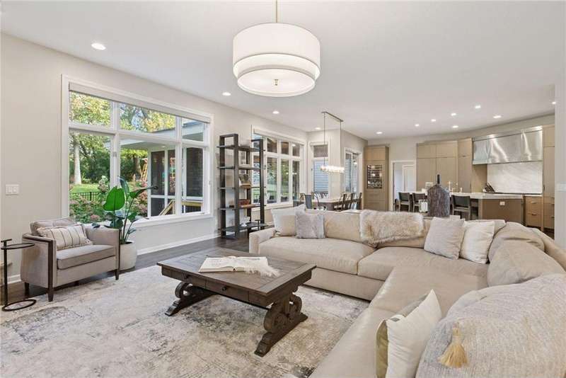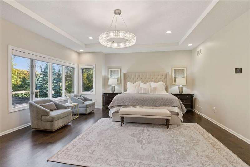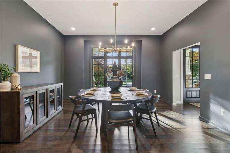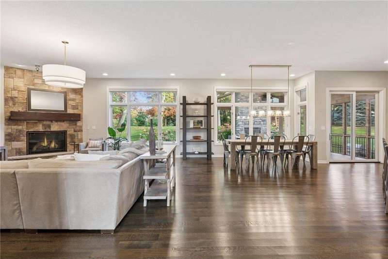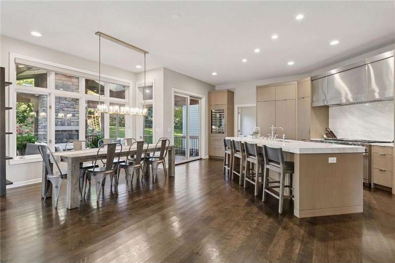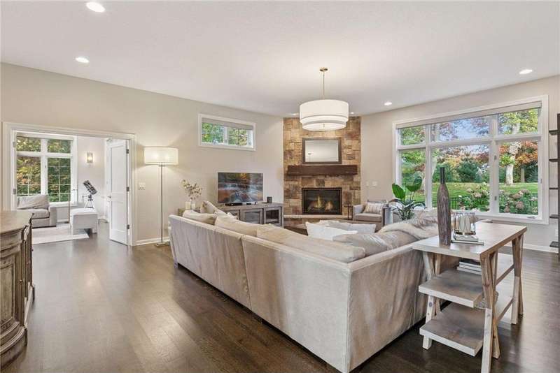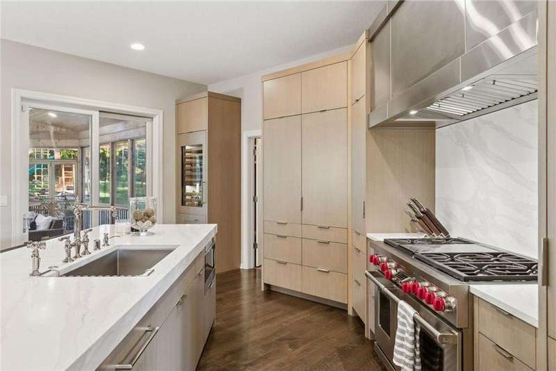 A stunning blend of modern design and timeless luxury, this beautifully reimagined home showcases high-end renovations and effortless style throughout. The all-new Streeter & Associates kitchen is the true centerpiece with custom cabinetry in rift cut oak, premium appliances, quartz surfaces, and designer lighting—crafted for everyday living and elevated entertaining. A cabinet pantry includes spaces for a coffee station, toaster and appliance storage, a full walk in pantry and a subzero wine and beverage unit built in for added convenience. New wood flooring and rich hardwoods flow through open, sun-filled spaces offering formal and casual dining, a glass-wrapped sunroom, and a vaulted porch with gas fireplace for multi-year enjoyment. A main-floor office with closet and attached ¾ bath offers flexible use—ideal for guests, extended stays, or a private workspace. Upstairs, the serene primary retreat features a newly designed spa-inspired bath, plus 3 additional bedrooms and 2 full baths. The finished lower level impresses with a 2nd family room w/fireplace, full wet bar with mini fridge and bar seating, large home theater, exercise room suited for a golf simulator, and guest suite. Set on 1.8 acres in a quiet cul-de-sac, enjoy a fenced yard, hot tub, luxury playset, and expansive front porch. 4-car finished garage, hardwood floors throughout, 6,297 sq ft finished. Award-winning Mounds View Schools. Sophisticated, versatile, and designed for today’s modern lifestyle.
