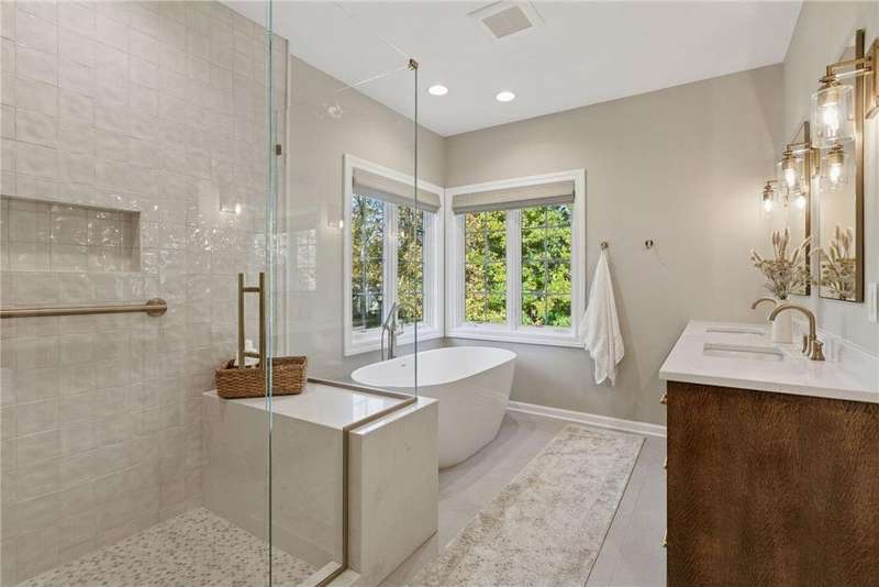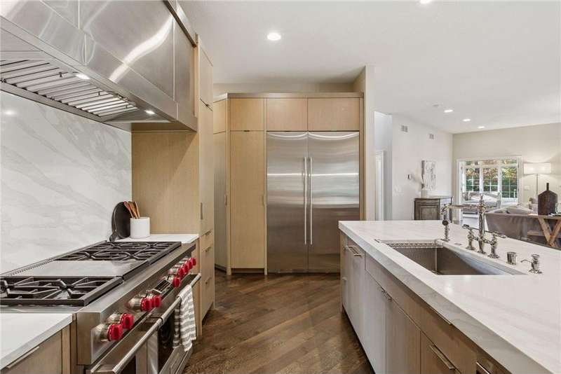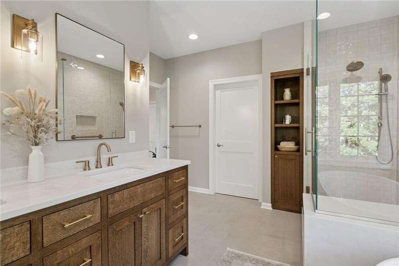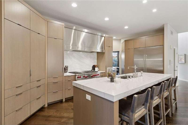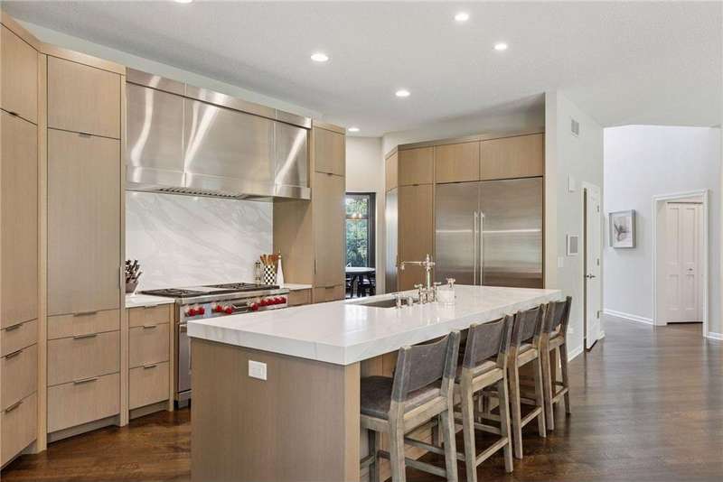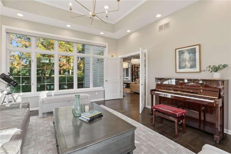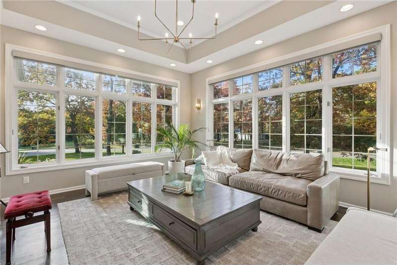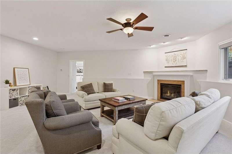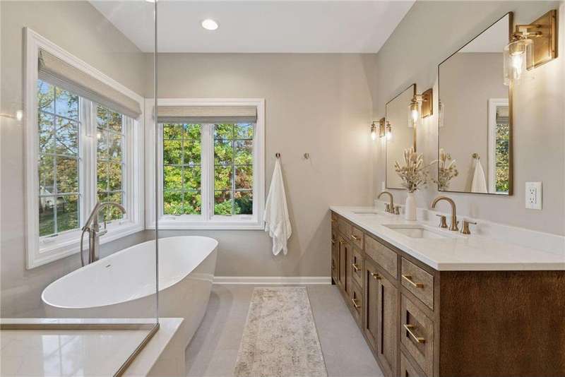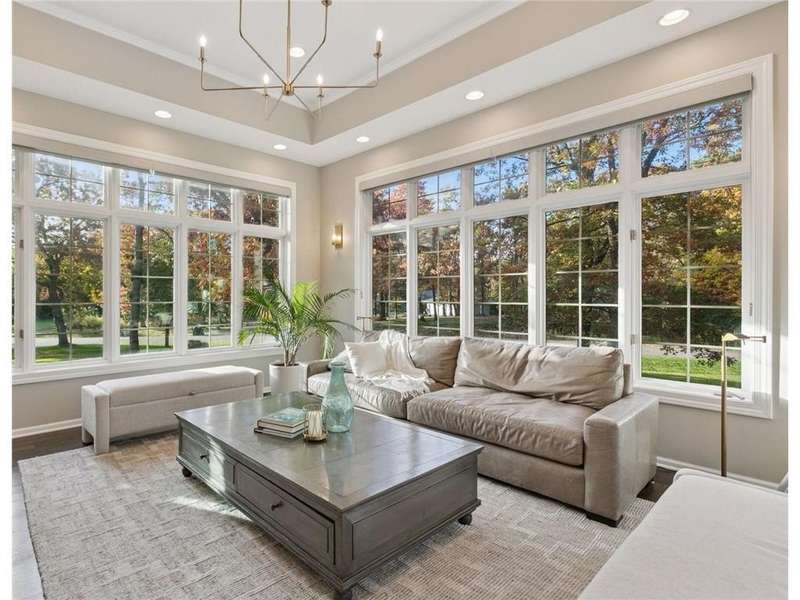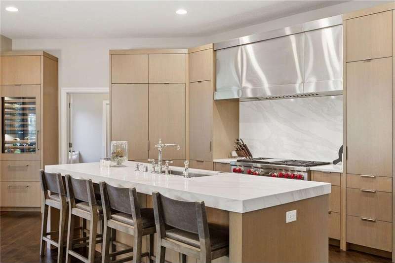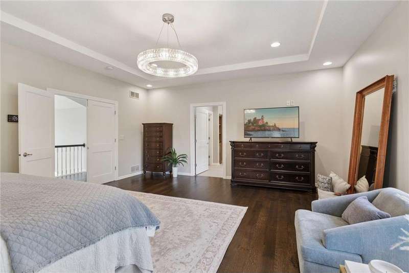A stunning blend of modern design and timeless luxury, this beautifully reimagined home showcases high-end renovations and effortless style throughout. The all-new Streeter & Associates kitchen is the true centerpiece with custom cabinetry in rift cut oak, premium appliances, quartz surfaces, and designer lighting—crafted for everyday living and elevated entertaining. A cabinet pantry includes spaces for a coffee station, toaster and appliance storage, a full walk in pantry and a subzero wine and beverage unit built in for added convenience. New wood flooring and rich hardwoods flow through open, sun-filled spaces offering formal and casual dining, a glass-wrapped sunroom, and a vaulted porch with gas fireplace for multi-year enjoyment. A main-floor office with closet and attached ¾ bath offers flexible use—ideal for guests, extended stays, or a private workspace. Upstairs, the serene primary retreat features a newly designed spa-inspired bath, plus 3 additional bedrooms and 2 full baths. The finished lower level impresses with a 2nd family room w/fireplace, full wet bar with mini fridge and bar seating, large home theater, exercise room suited for a golf simulator, and guest suite. Set on 1.8 acres in a quiet cul-de-sac, enjoy a fenced yard, hot tub, luxury playset, and expansive front porch. 4-car finished garage, hardwood floors throughout, 6,297 sq ft finished. Award-winning Mounds View Schools. Sophisticated, versatile, and designed for today’s modern lifestyle.