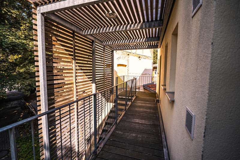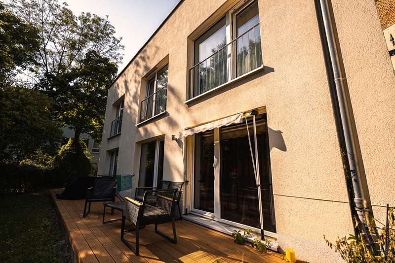 ** Investment property and/or own use, directly on the narrow Gera** Your new investment directly on the calming, narrow Gera: Built in 2008, this passive house is quietly located in the backyard of a listed building ensemble. 176.00 m² of living space is spread across four residential units in the apartment building. The apartments on the first floor, each with 25.00 and 51.00 m², are complemented by a generously sized terrace surrounded by greenery. The attic maisonette apartment on the upper floor offers an idyllic living experience with 85.00 m² of living space and a view of the greenery. Adjacent is the 1-room apartment with 25.00 m². All apartments are fully furnished, rented and generate monthly net rental income of € 2,800 and € 33,600 per year. The property is perfect as a hybrid solution - use one or more apartments yourself and rent out the others and generate income.