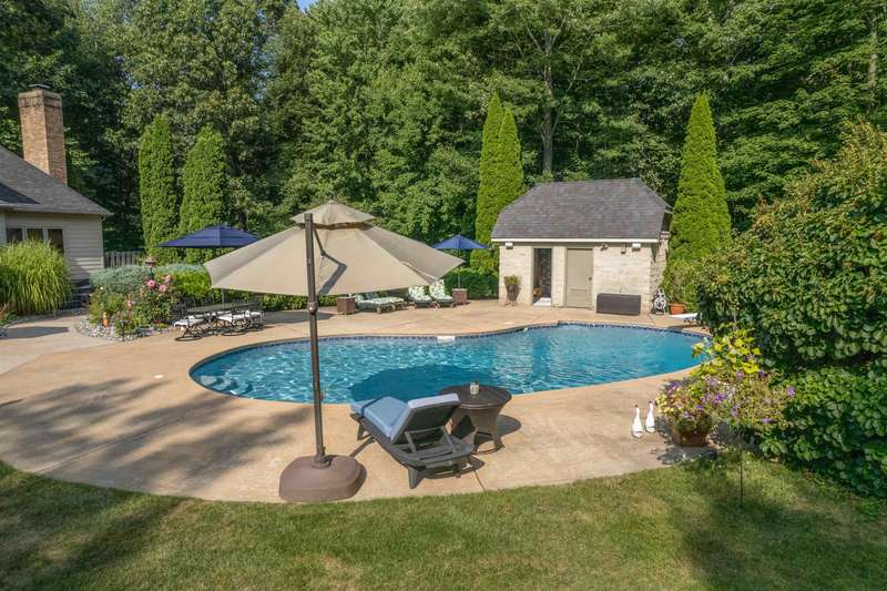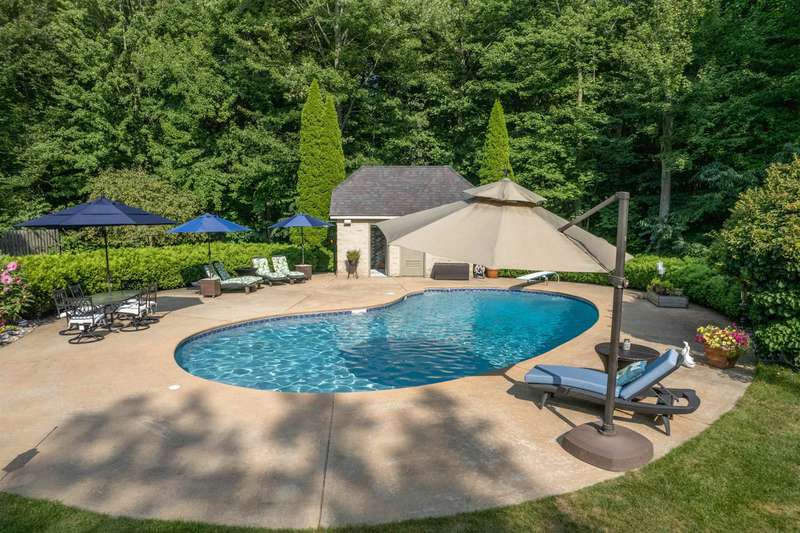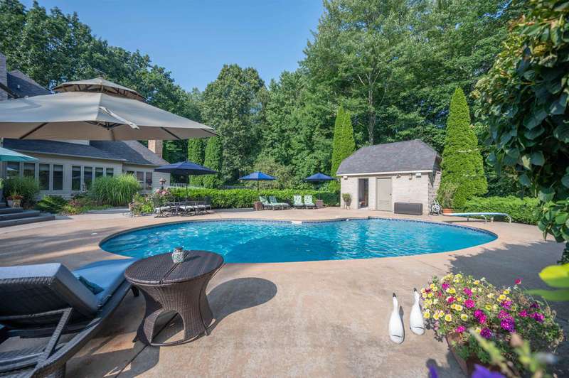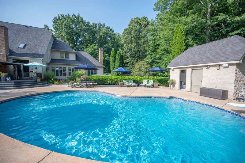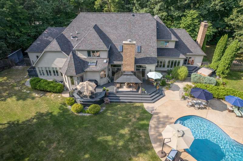 Nestled on double lot spanning 2 acres in the prestigious Woodland Estates, this stunning family home offers the perfect blend of space, elegance, and resort-style living. Step into your private backyard oasis, complete with an in-ground pool and a pool house that features a half bath, hot tub, and lush, mature landscaping—ideal for entertaining or unwinding in total serenity. With 4,276 sq ft of living space plus basement (additional 3,302 sq.ft. of which 1,981 sq.ft. is finished), this home features 5 spacious bedrooms and 4.5 bathrooms. Designed for both everyday living and special occasions, the layout includes a formal living room, elegant dining room, cozy family room, bright breakfast nook, and a majestic library/home office with its own fireplace. Offering everyday luxury and timeless appeal, this exceptional property is ready to welcome you home.
