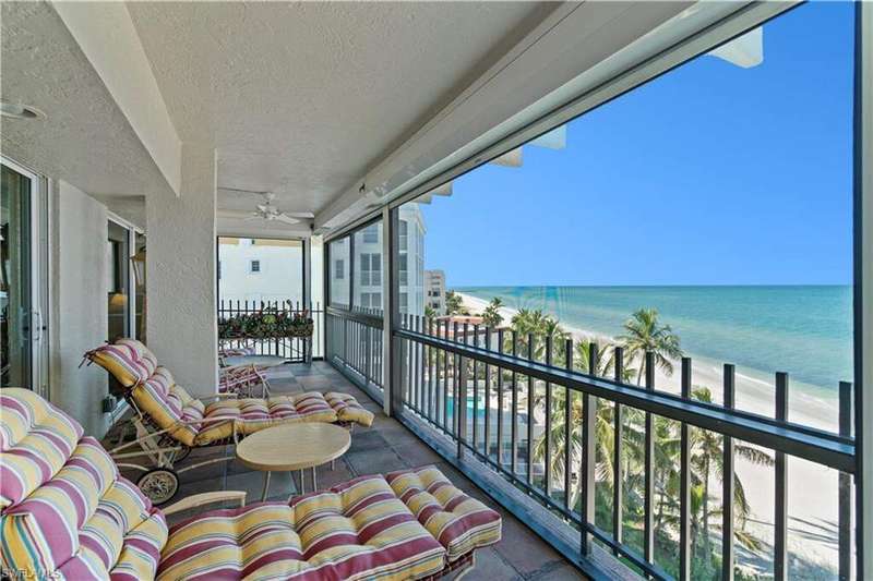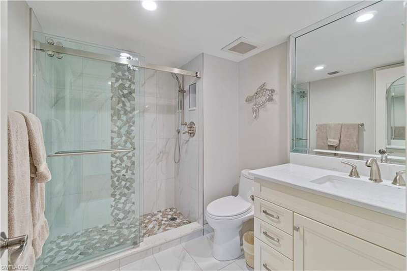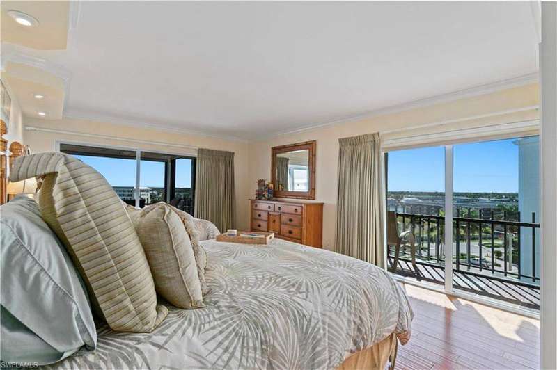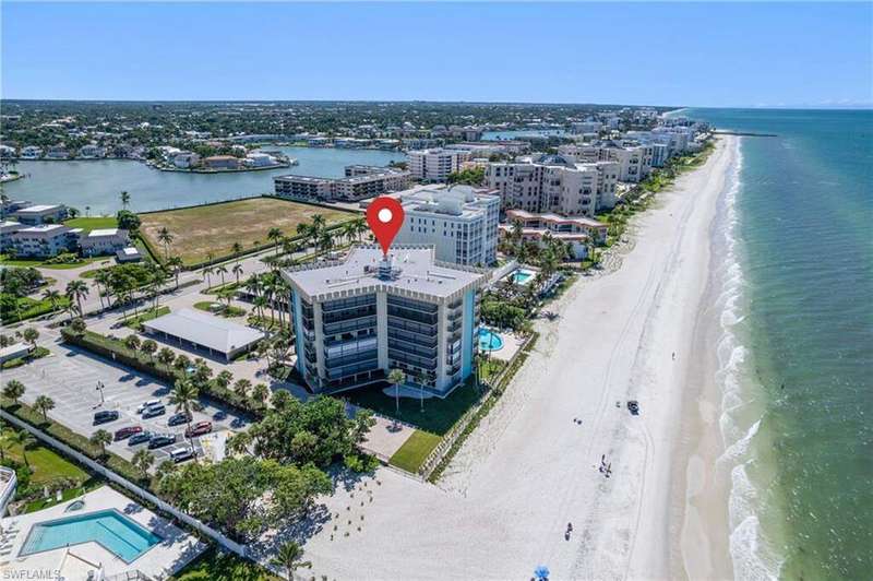 Enjoy sweeping SW Gulf and East Bay views from this rare three-bedroom plus den penthouse in the highly sought-after Moorings community of Imperial Club. Perfectly perched on Moorings Beach, this residence delivers the best of coastal living-sunset skies over the Gulf to the west, sparkling Moorings Bay and city lights to the east. A generous 38-foot west-facing lanai invites you to take in the sand, sea and sunset, while a second 38-foot east facing lanai showcases bayfront and city views. Inside, the thoughtful floor plan offers two equal-sized primary suites with large walk-in closets, plus a third guest bedroom, third full bath and a den that can easily serve as a fourth bedroom, TV room or home office. The kitchen features granite countertops and a separate dedicated bar area, ideal for entertaining. There is also a dedicated dining room, separate wet bar and a large laundry/utility room. Hardwood floors, electric roll-down hurricane shutters, and abundant storage throughout add both comfort and peace of mind. Additional highlights include TWO covered parking spaces and newly renovated amenities: a beachfront pool, stylish social room with catering kitchen, fitness center, and guest suite. No land lease, an unbeatable Moorings location, and move-in ready-this penthouse truly offers it all. Easy to show.