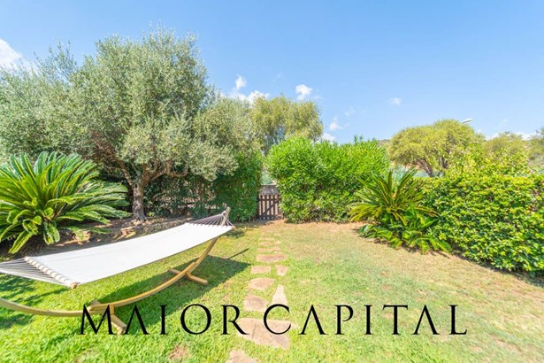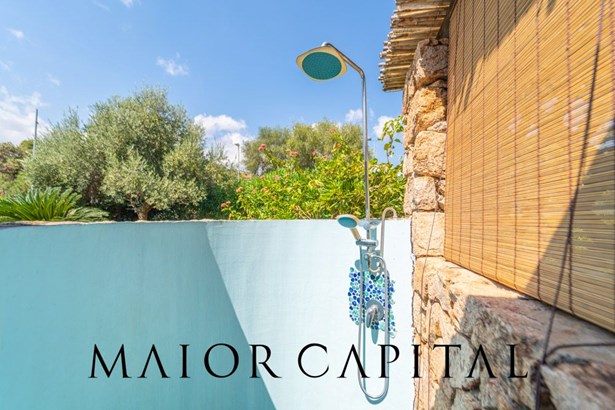 The highlight of this property is the large landscaped garden, which surrounds the house on three sides. The well-kept and private outdoor spaces offer unique liveability throughout all seasons. The property is enriched by two covered verandas: the front one, equipped with delicate white curtains that can be opened, offers an intimate and versatile environment; the one at the rear, embellished with decorative niches and finishes in typical local stone, conveys authenticity and Mediterranean charm.