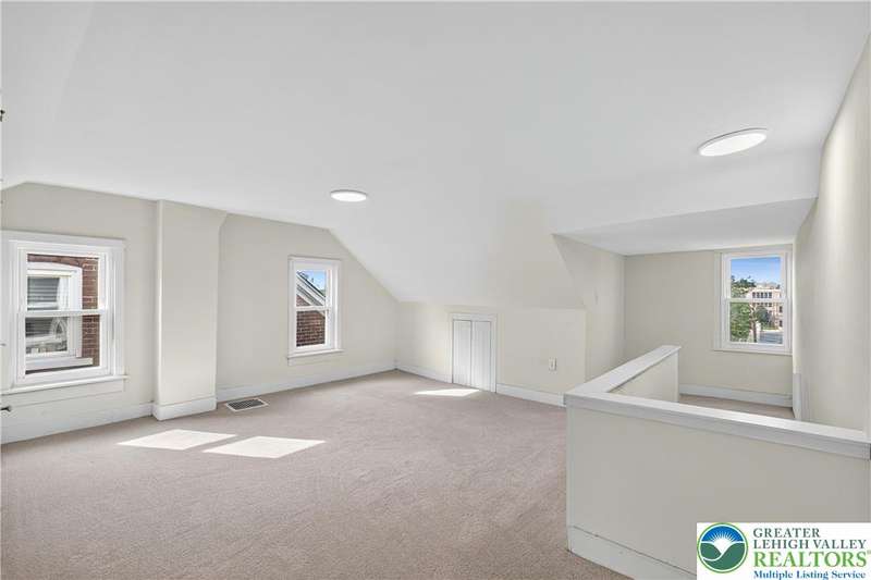 Set in desirable North Bethlehem, this home blends timeless character with modern comfort and thoughtful design. Recent updates make it truly move-in ready, beginning with a BRAND NEW ROOF, vinyl replacement windows, economical natural gas forced air heat, and fresh luxury vinyl plank floors paired with plush wall-to-wall carpet. At the heart of the home is a NEW KITCHEN with quartz countertops, stylish coffee bar, and space for a breakfast table perfect for morning routines or casual gatherings. A convenient FIRST FLOOR LAUNDRY AND HALF BATH add everyday ease, while bright, inviting living spaces flow seamlessly for both daily living and entertaining. Upstairs, you ll find a full modernized bath and three comfortable bedrooms, with the option for a fourth on the third floor ideal for guests, a home office, or creative retreat. Located in a welcoming North Bethlehem community, this property is just minutes from schools, shops, and dining, offering the perfect balance of neighborhood charm and urban convenience. With its blend of cozy appeal and smart updates, this gem is ready for its next chapter. Property comes with clear CO.
