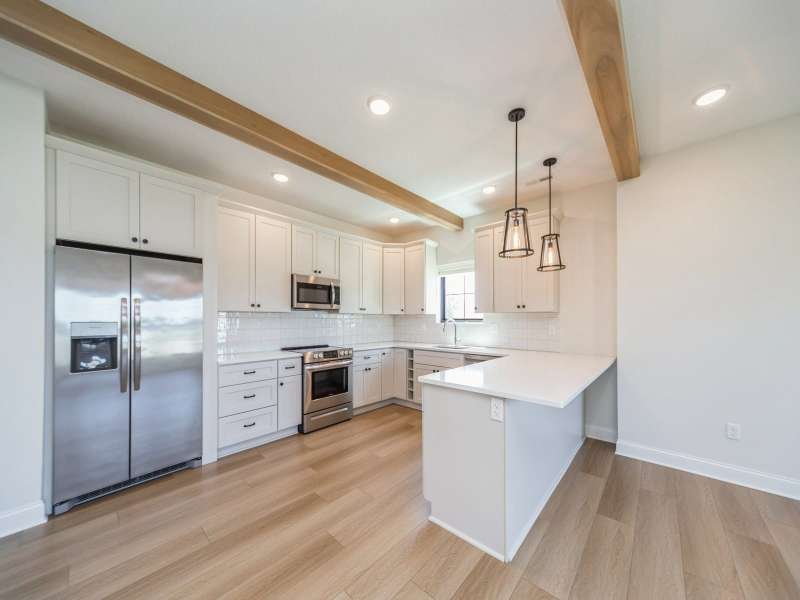 End unit with awesome southern exposure in Calusa at Timberline Village. This townhome effortlessly combines style, sophistication, and functionality. The open-concept kitchen shines with quartz countertops, custom cabinetry, stainless steel appliances and a walk-in pantry. The living area features 9 ceilings, large windows, a half bath and drop zone off the oversized two-car garage. Upstairs, the primary suite offers a spa-like bath with double quartz vanities, a tiled walk-in shower, and a spacious walk-in closet. Two additional bedrooms and a laundry room add functionality and style. Located in a prime location with convenient access to all area amenities!