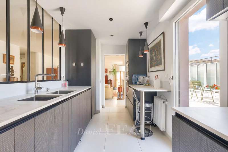 This superb apartment on the top floor of a recent building (2023) benefits from 97 sqm of peaceful outdoor areas. Offering 109.07 sqm of living space as defined by the Carrez Law, it includes a spacious living/reception room bathed in sunshine and opening onto a 63 sqm terrace, a dining room, a separate kitchen directly accessing the exterior, a storage room, a master suite with a bath/shower room, a second bedroom, a shower room and a separate wc. The bedrooms open onto a second 34 sqm terrace. The dining room could create a third bedroom if required. With a lock-up garage and a basement parking space.