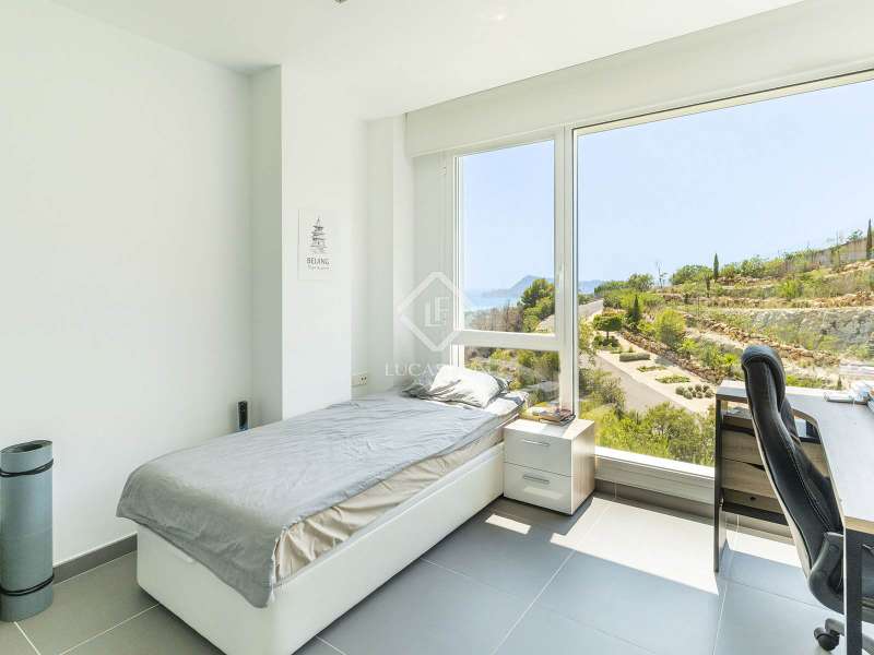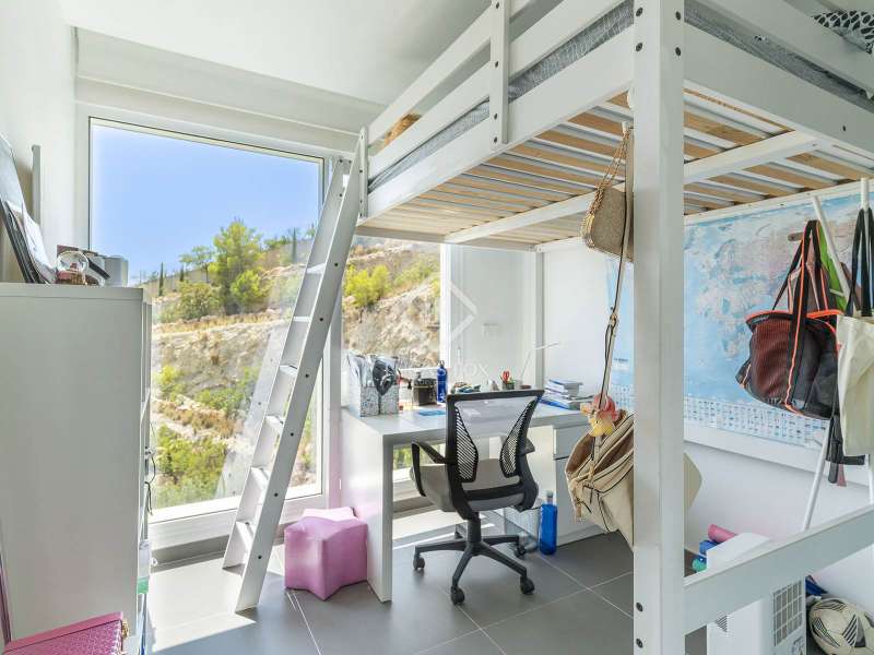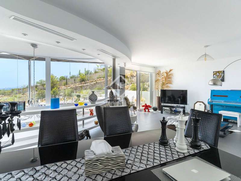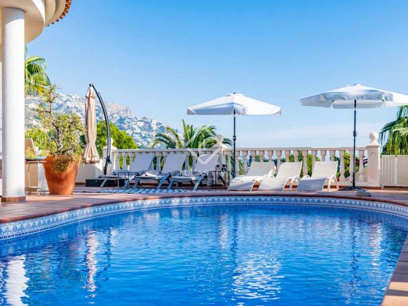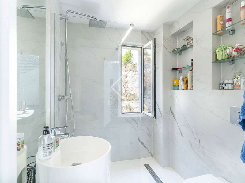 Exclusive luxury villa located in one of the most prestigious areas of Altea, within a gated development with 24-hour video surveillance. With 323 m² built area and 280 m² usable area, this elegant property, spread over three floors connected by an elevator and staircase, has been completely renovated with top-quality materials and is ready to move into. On the access floor , there is a closed garage, an elegant entrance hall, and a double bedroom with an en-suite bathroom . The main floor offers a spacious open-plan living room with spectacular sea views and access to a 70 m² terrace with a private pool, chill-out area, and barbecue. It also includes a fully equipped designer kitchen and a guest toilet. The lower floor houses the bedroom area, with three double bedrooms en suite, including the spectacular master suite, as well as a utility room and utility room. The property features an alarm system, electric shutters , and air conditioning in all rooms. It perfectly combines comfort, functionality, and elegance, offering bright spaces that maximize sea views. Its safe and peaceful setting, along with its proximity to all amenities, golf courses, and the marina, make this villa a unique opportunity to enjoy the most exclusive Costa Blanca.