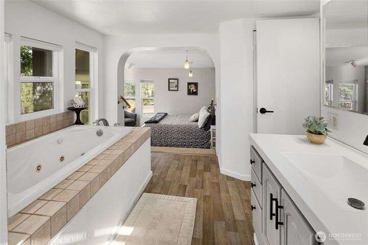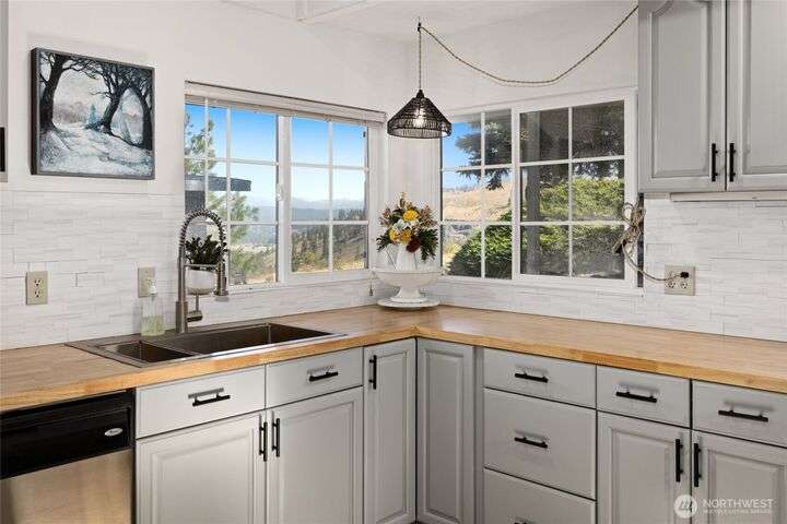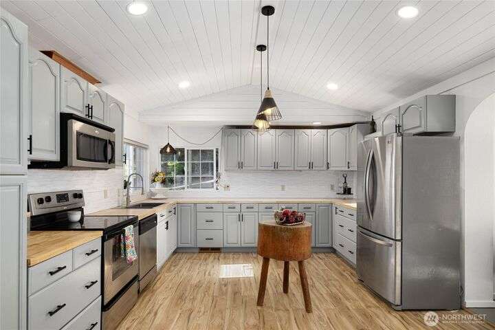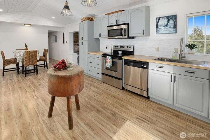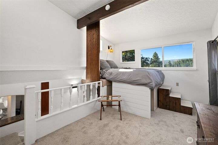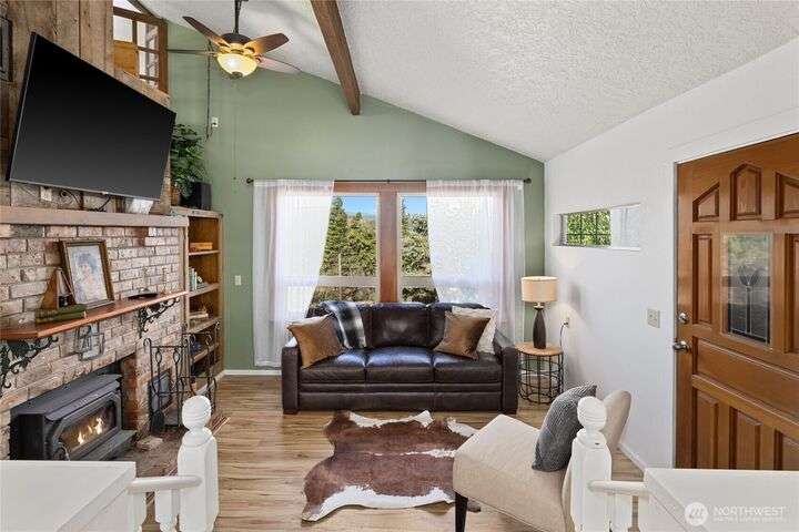 Seller offering $10,000 towards closing costs! Welcome to this gorgeous, updated 2,120 sqft home on nearly 0.5 acre. The spacious kitchen features expansive windows framing stunning views, vaulted ceilings, new light fixtures, butcher block countertops, cozy sitting area, + inviting dining space. Fun loft bedroom adds character, while the main living room’s cozy fireplace sets the tone for relaxation. A versatile bonus room w/gas fireplace can serve as hobby space, gym, or extra living space. Throughout, the home radiates a modern, chic vibe that’s truly unique. Outside, enjoy large garage, beautiful shed, + brand-new deck to soak in the breathtaking views. Located in a community w/2 lakes, a pool, + clubhouse!