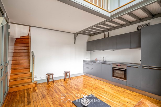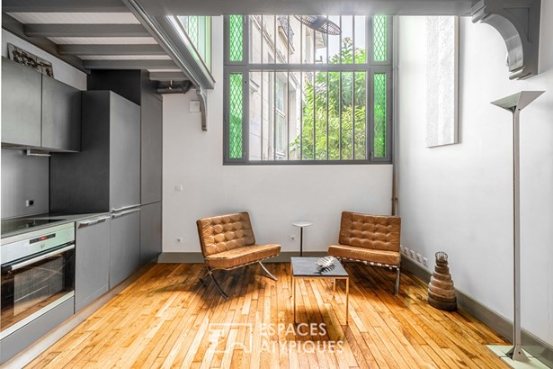Located in the heart of the Gaite/Montparnasse district, on the ground floor of a superb private mansion, this 42.5 m2 (460 sq ft) artist's studio offers a successful blend of period charm and contemporary flair.